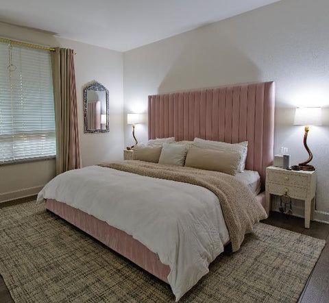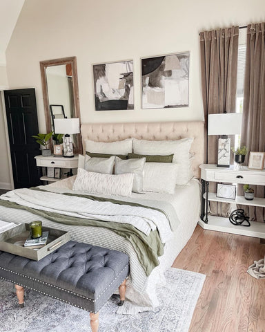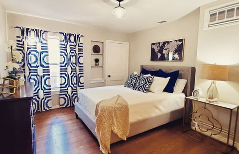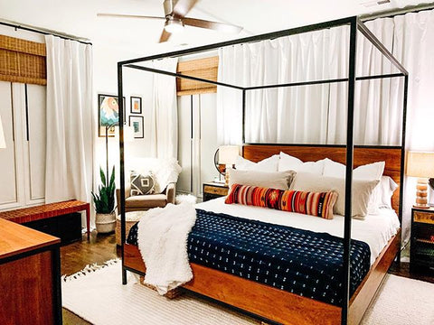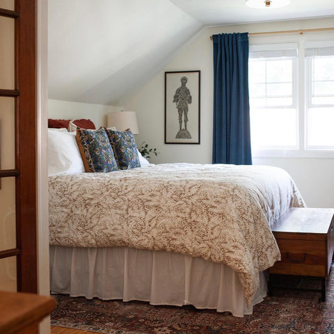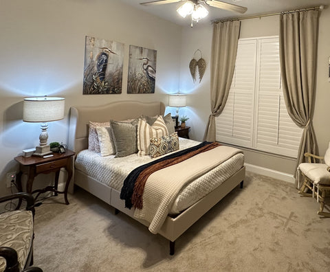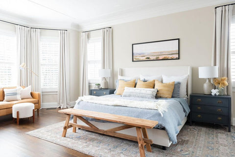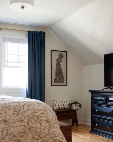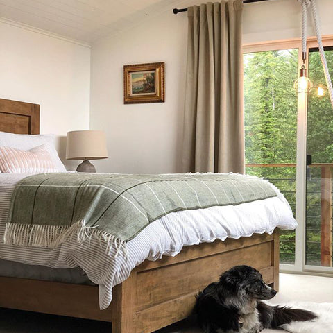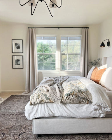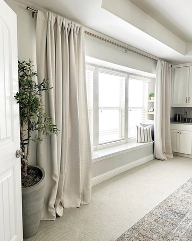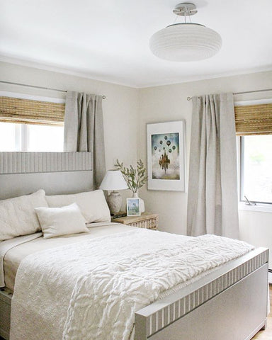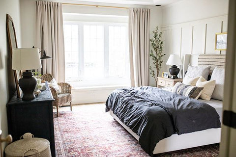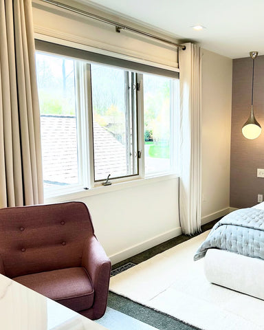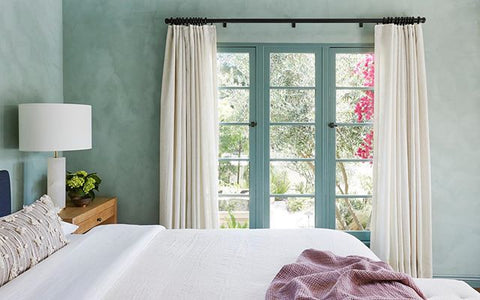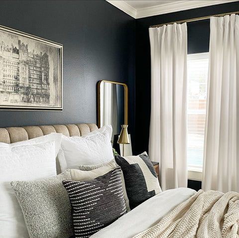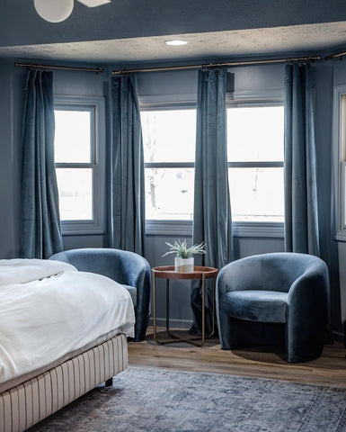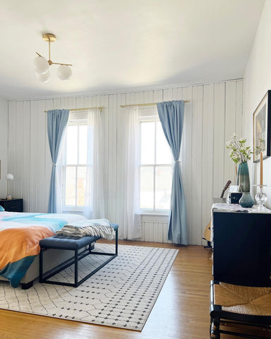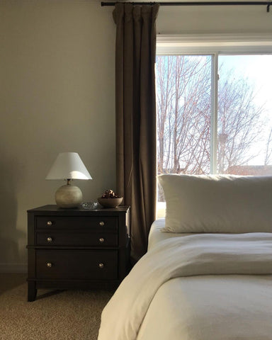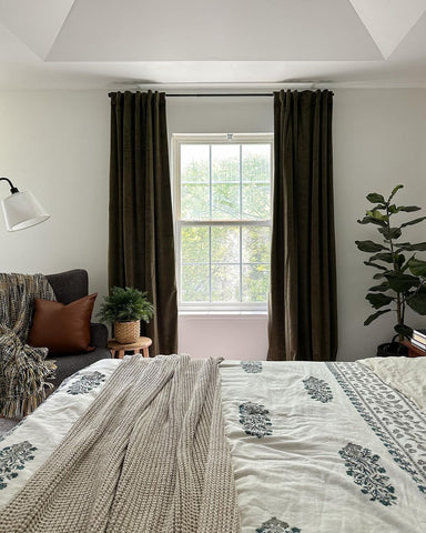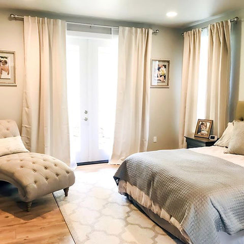 More than any other room in your home, your bedroom curtains and drapes play an essential part. They provide darkness to improve your sleep and privacy from the outside world. Our blackout curtains & drapes are beautiful and functional, providing the ultimate level of light control and, when paired with a layer of open weave linen blend sheer curtains, allow soft daylight to filter in. Our Customer Gallery is an excellent resource for bedroom curtain ideas. Please browse our selection of options and shop online.