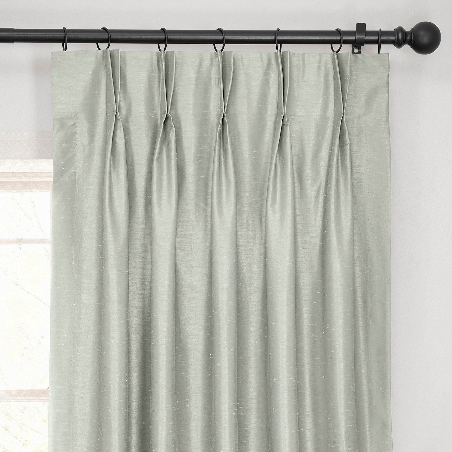 Silver French Pleat Vintage Textured Faux Dupioni Silk Blackout Curtain
