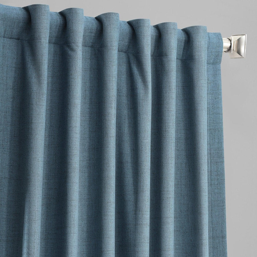 Ovation Blue Thermal Cross Linen Weave Blackout Curtain