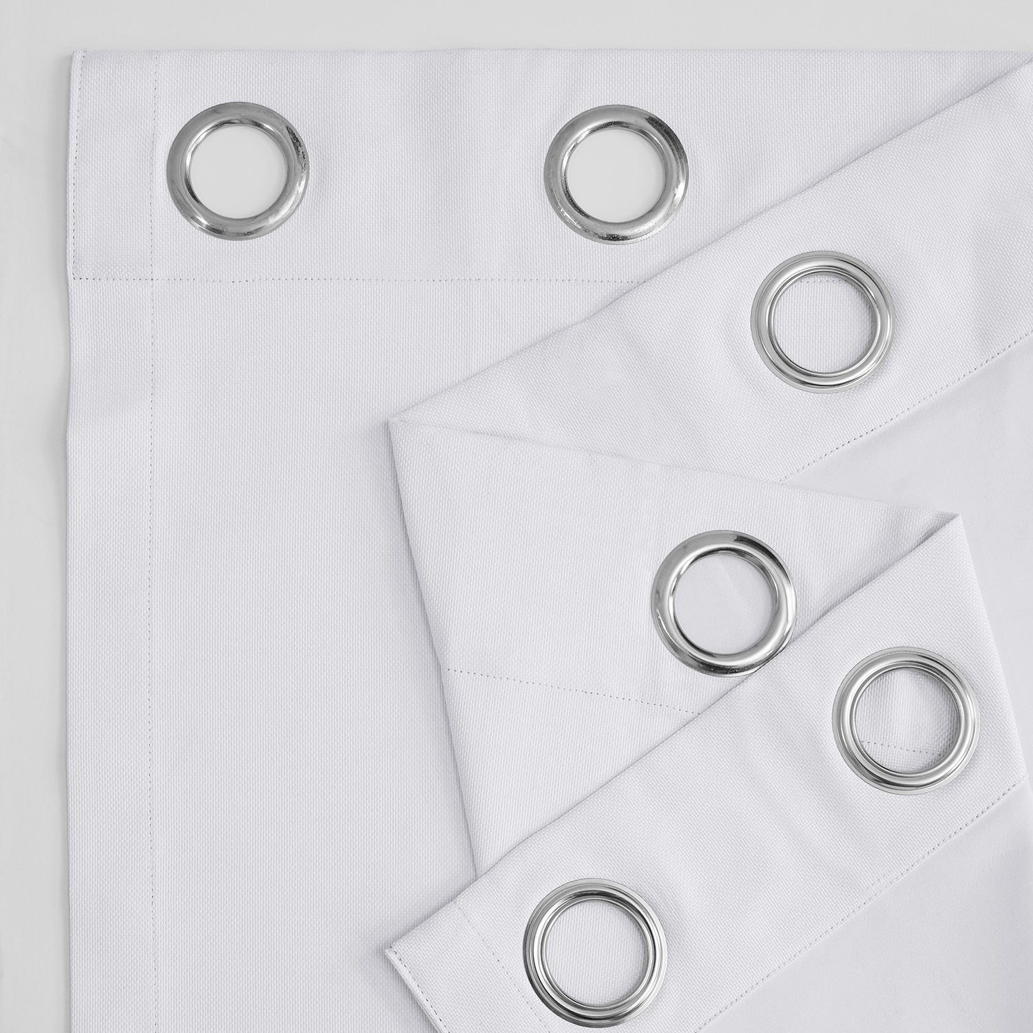- White is a bright white crosshatch. This linen-look curtain is unlined and backed with smooth off-white blackout fabric.