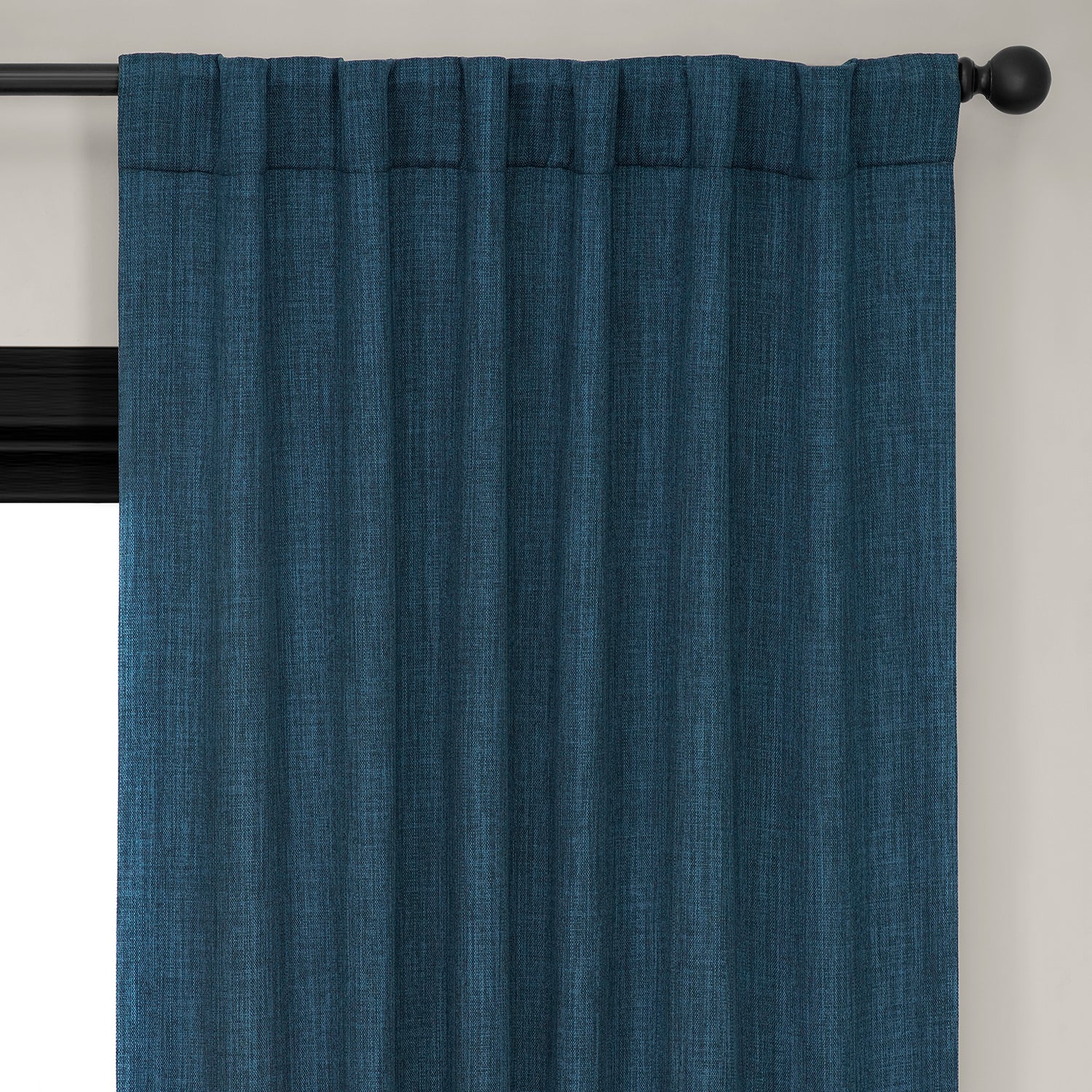Indigo Textured Faux Linen Room Darkening Curtain