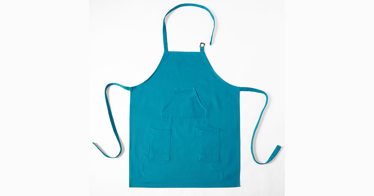 - Cook, Bake, Craft! Home decor fashion apron in our decorative prints to co-ordinate with our best-selling printed curtains & drapes collection. This 100% cotton bib apron has an adjustable neck strap with an attractive buckle and ties at the waist for a perfect fit. Three unique pockets to hold this and that. We make the connection between a low price tag and high purpose. Our 3-pocket bib aprons are fashionable and functional from kitchen-to-dining room and in the workshop too.