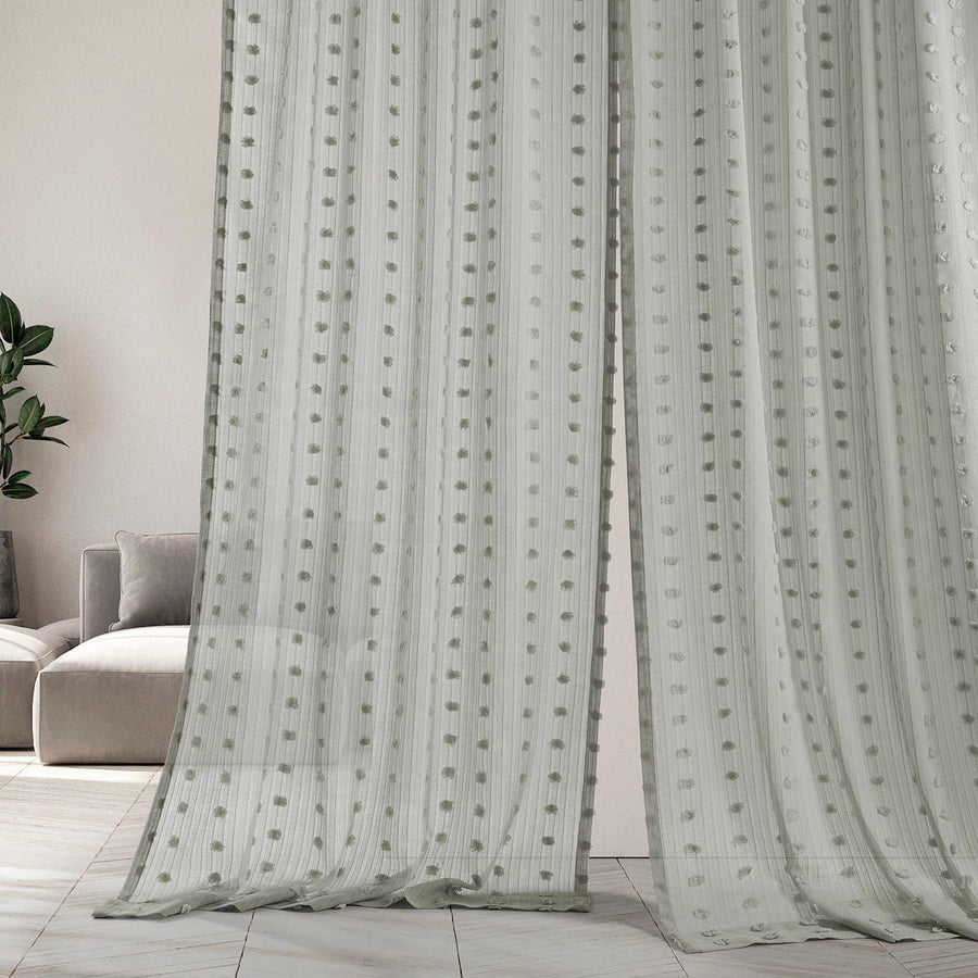 Strasbourg Dot Grey Geometric Patterned Faux Linen Sheer Curtain