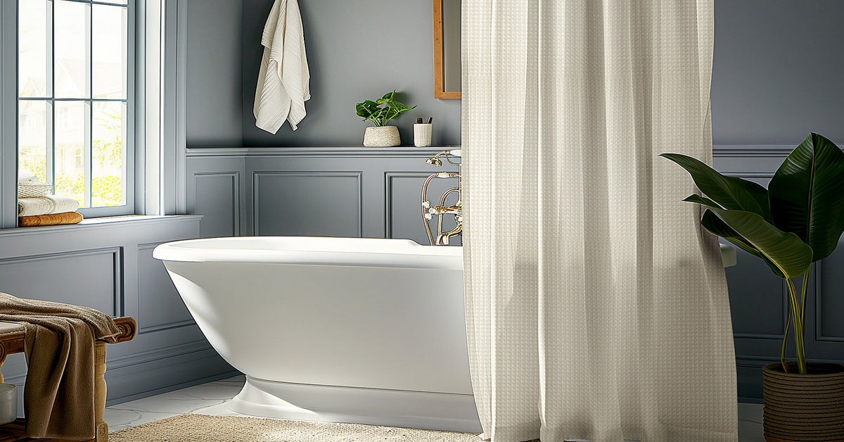 Off-White Modern Waffle & Heavyweight Fabric Shower Curtain