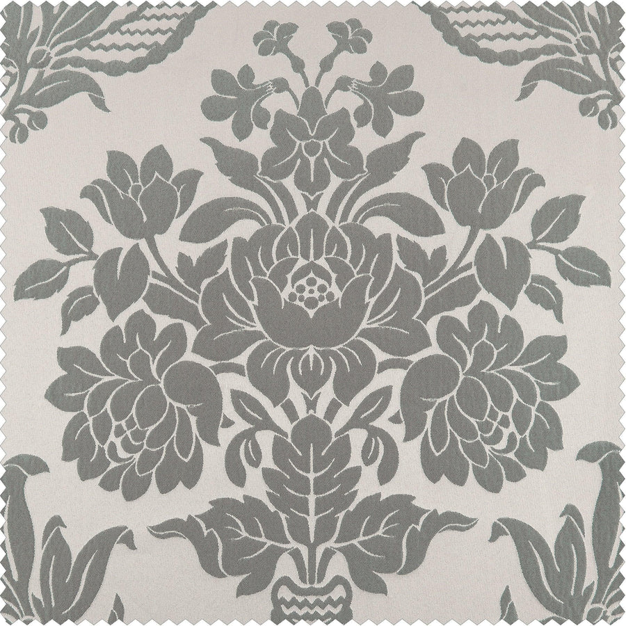 Magdelena Silver & Blue Damask Faux Silk Jacquard Custom Curtain