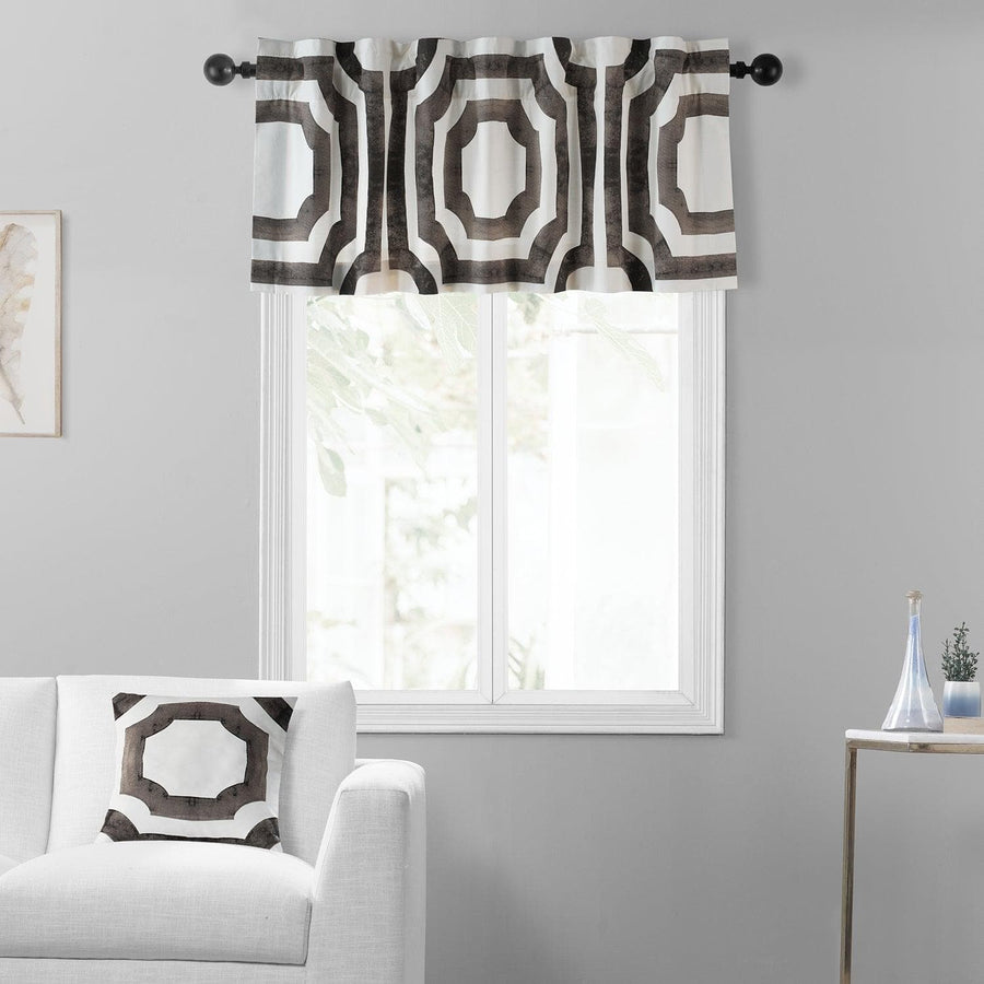 - Mecca Brown is a bold modern geometric print in gradient dark copper brown tones on an off-white background. This 100% cotton twill window valance is lined with off-white fabric.