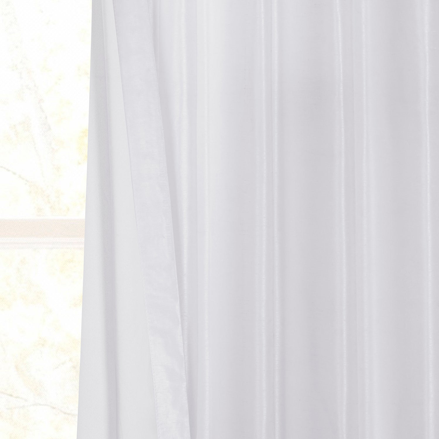 - Vintage Ice is bright white with slubs scattered throughout. This iridescent silk-look curtain is lined with off white blackout fabric.