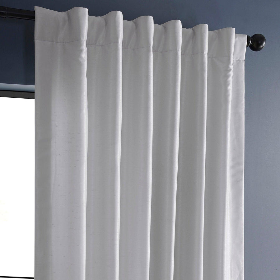 - Vintage Ice is bright white with slubs scattered throughout. This iridescent silk-look curtain is lined with off white blackout fabric.