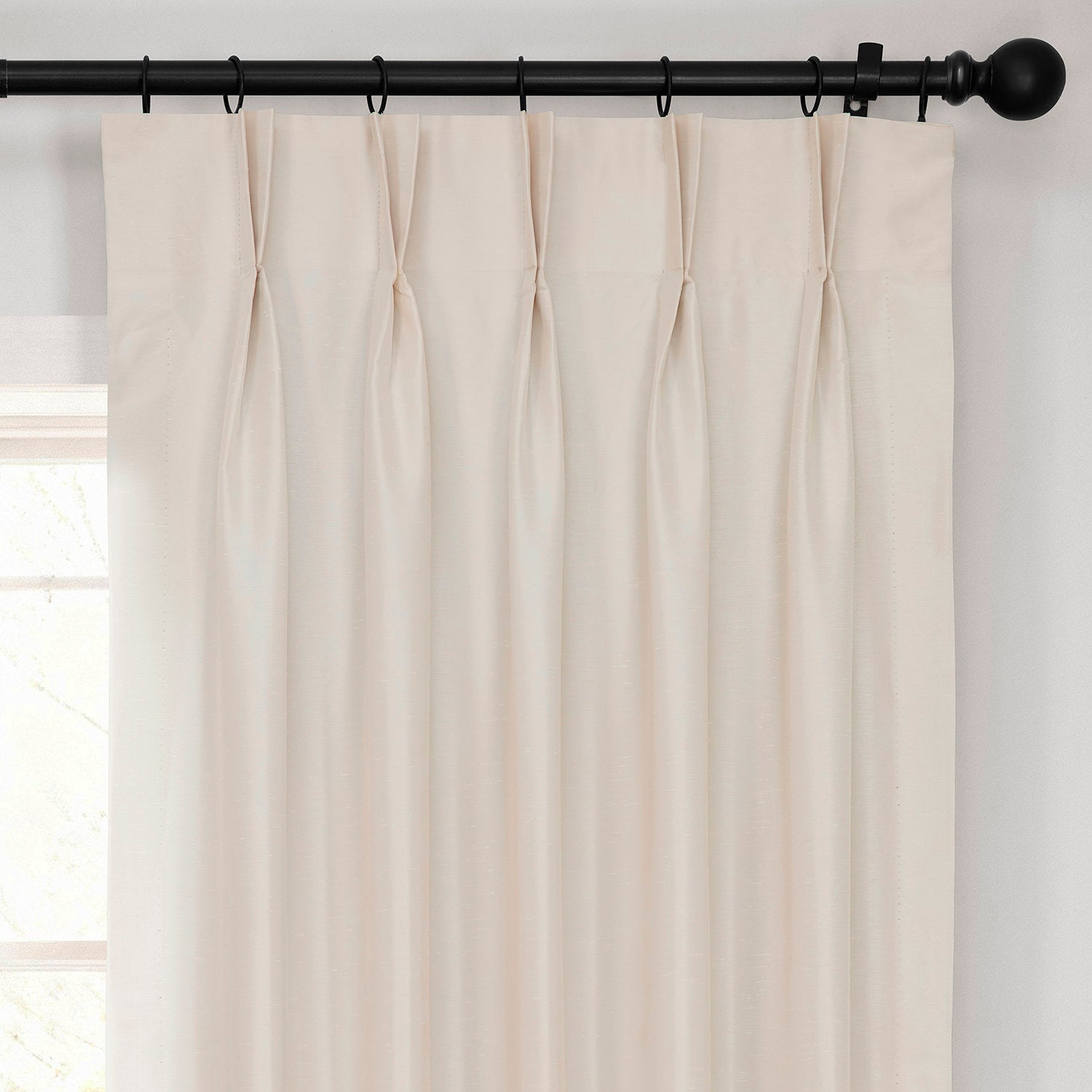 Off White French Pleat Vintage Textured Faux Dupioni Silk Blackout Curtain