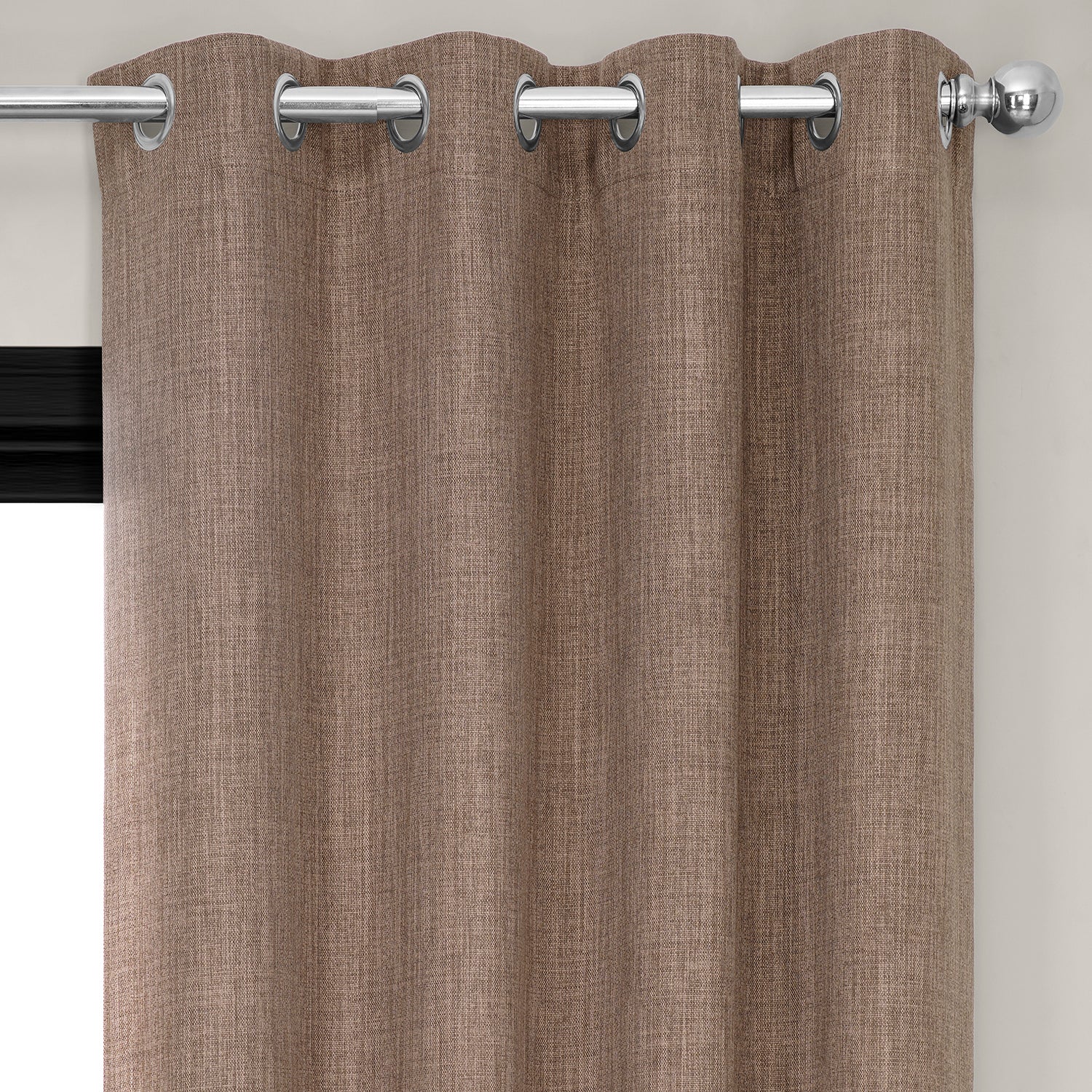 Dutch Cocoa Grommet Textured Faux Linen Room Darkening Curtain