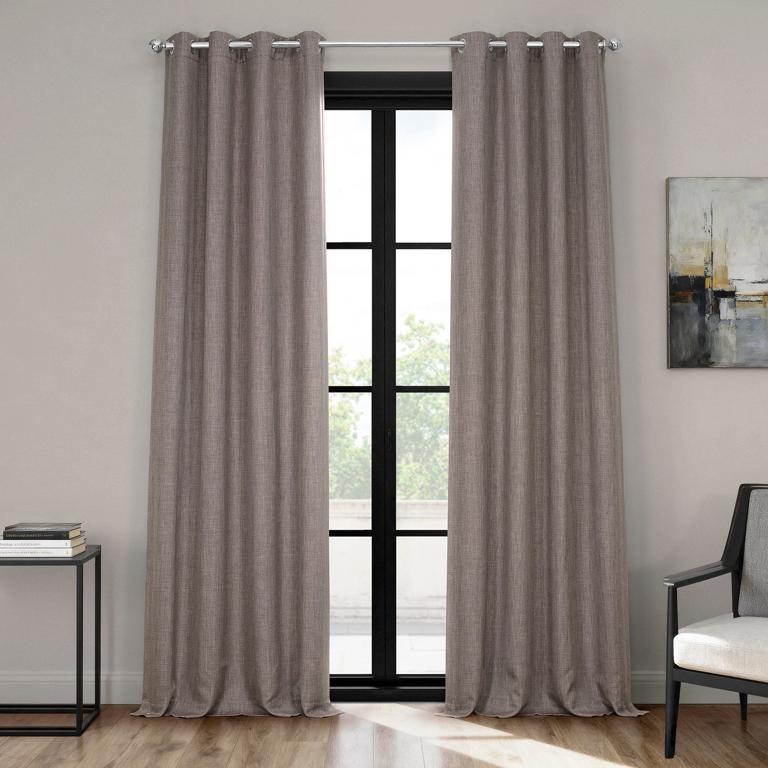 Mink Grommet Textured Faux Linen Room Darkening Curtain