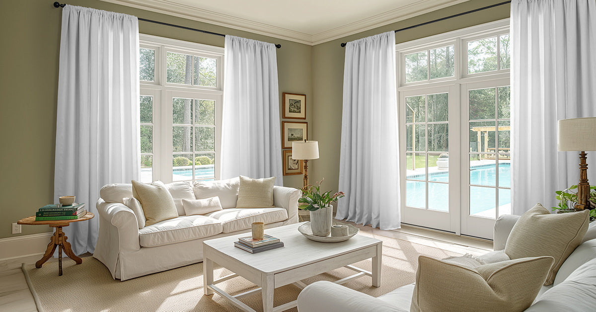 Crisp White French Linen Room Darkening Curtain