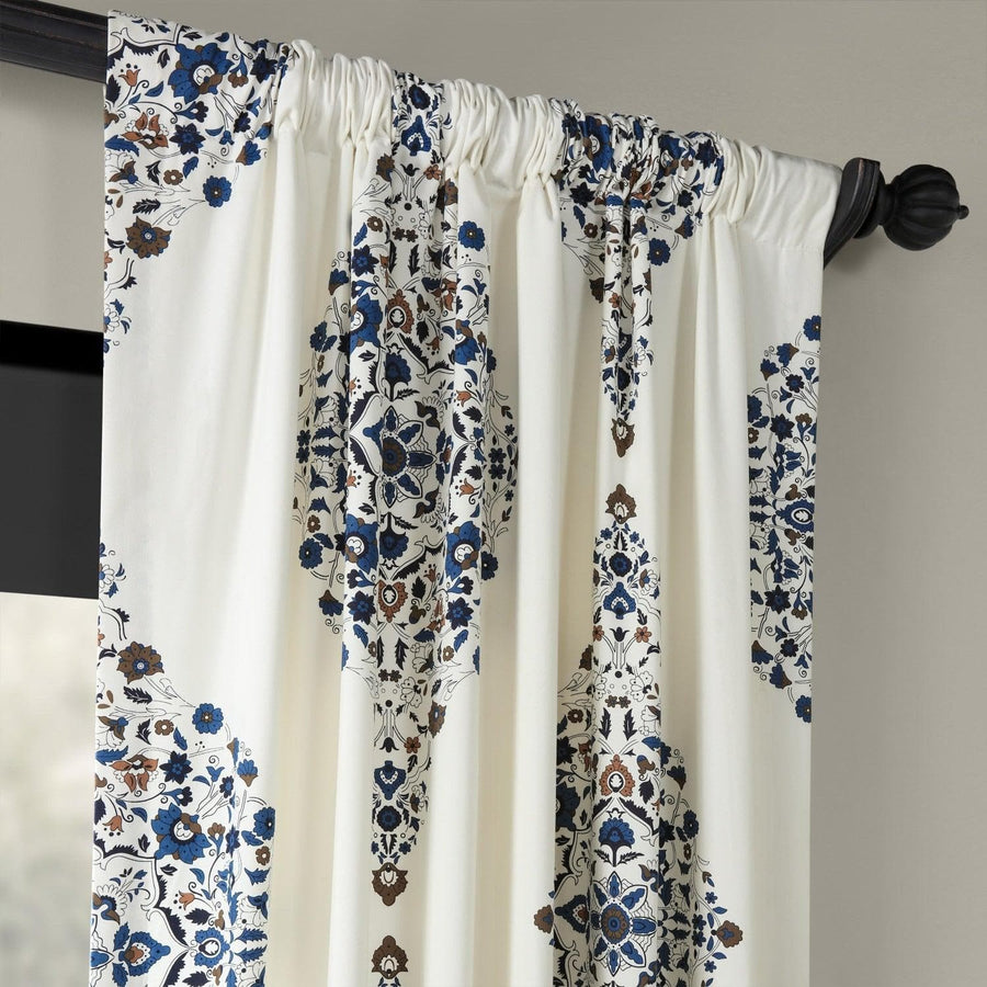 Zoom Kerala Blue Printed Cotton Curtain - HalfPriceDrapes.com