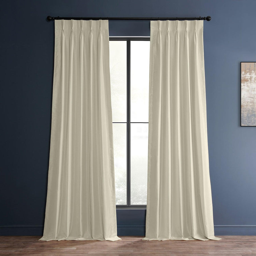Off White French Pleat Vintage Textured Faux Dupioni Silk Blackout Curtain