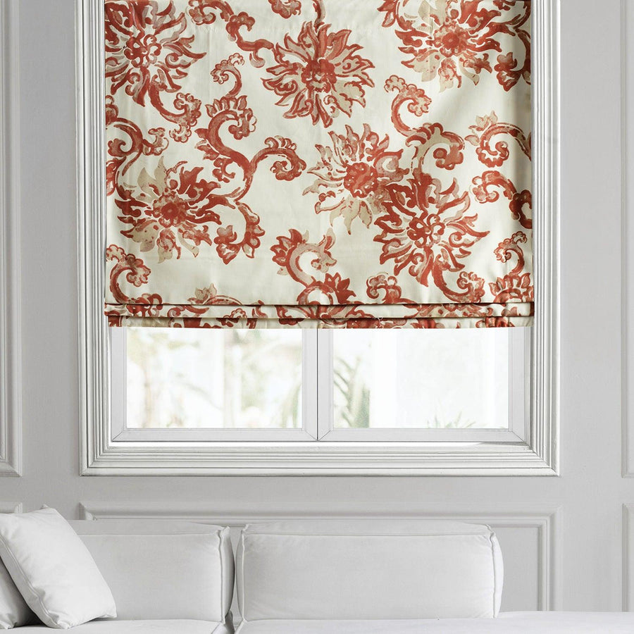 Indonesian Rust Floral Printed Cotton Roman Shade