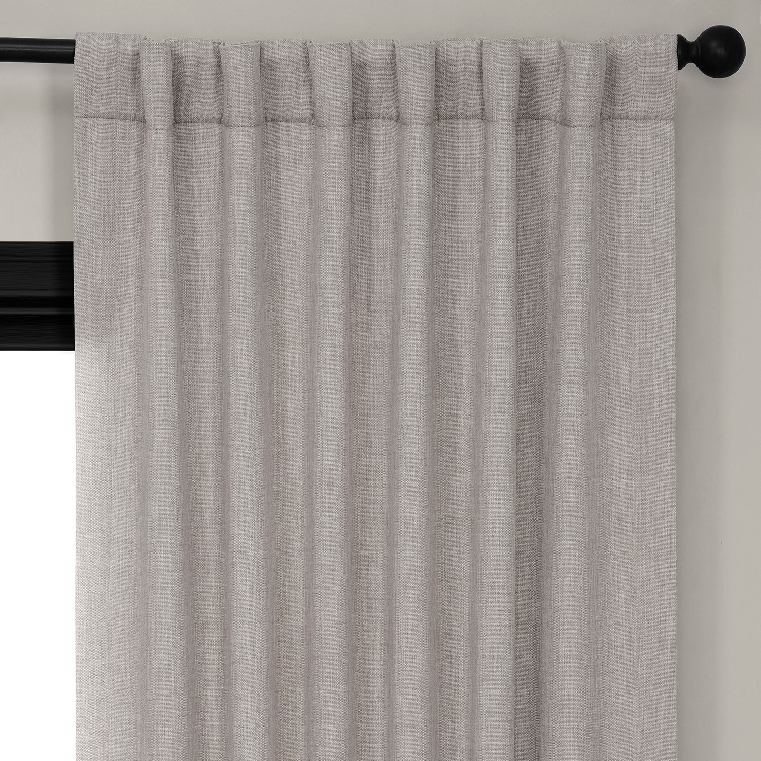Textured Faux Linen Room Darkening Curtains: Create a warm and inviting atmosphere in your home with these Textured Faux Linen Room Darkening Curtains. The textured faux linen fabric adds depth and dimension to your windows while the room darkening feature provides privacy and light control. Made from 100% polyester, these curtains are durable and easy to maintain. The pole pocket with hook belt and back tabs make hanging a breeze, and the unlined design allows for easy maintenance. These curtains are perfect for bedrooms, living rooms, or any space where you want to create a cozy and inviting environment.