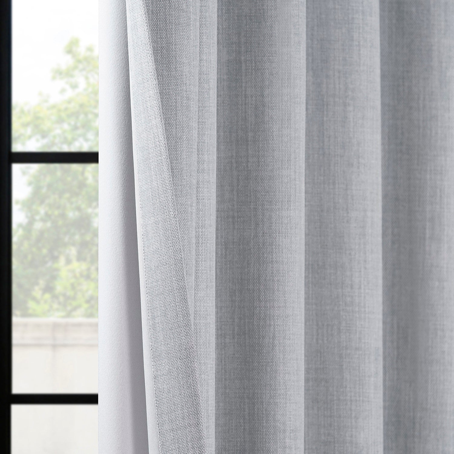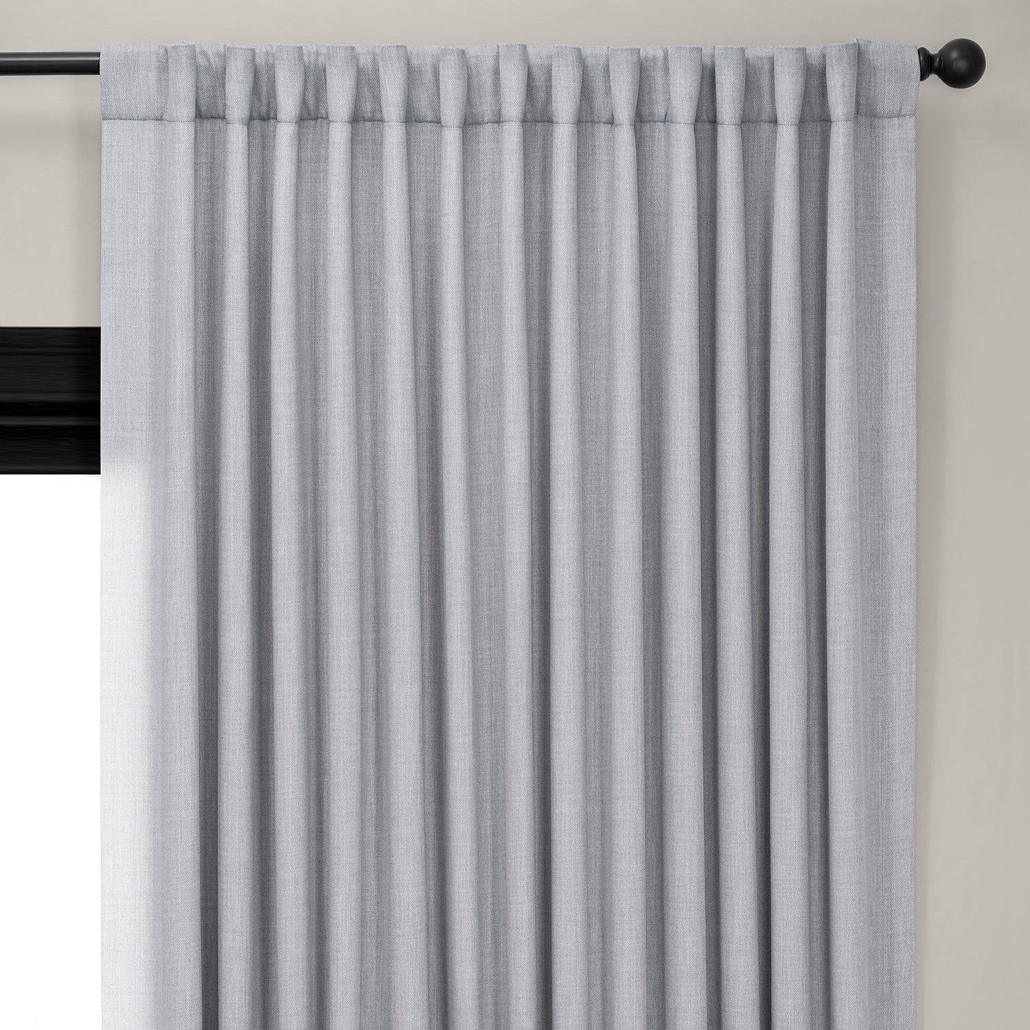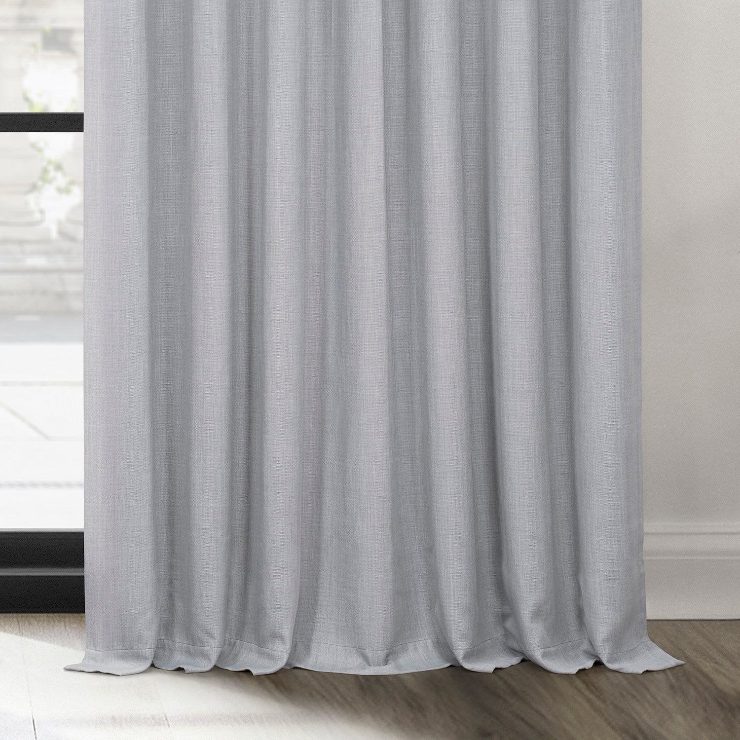 Heather Grey Extra Wide Textured Faux Linen Room Darkening Curtain