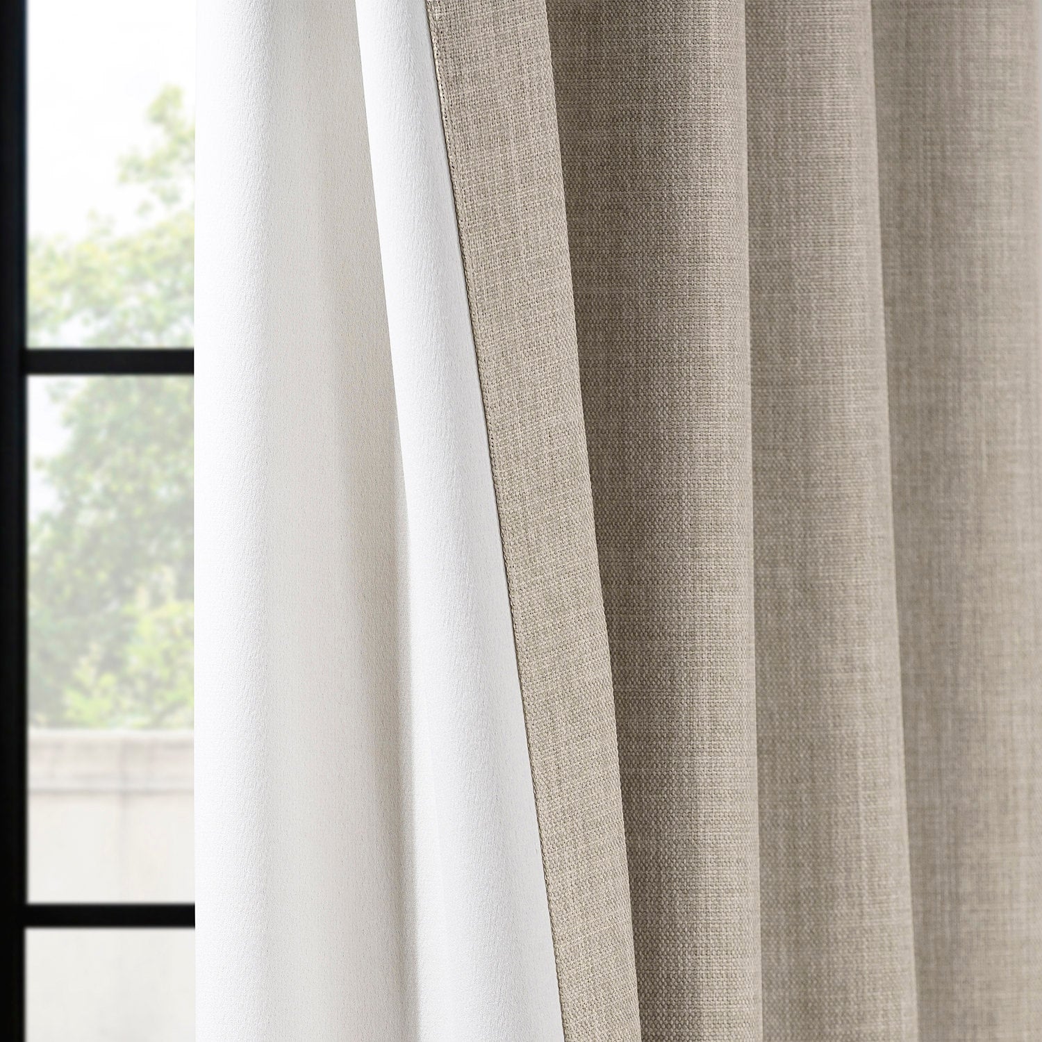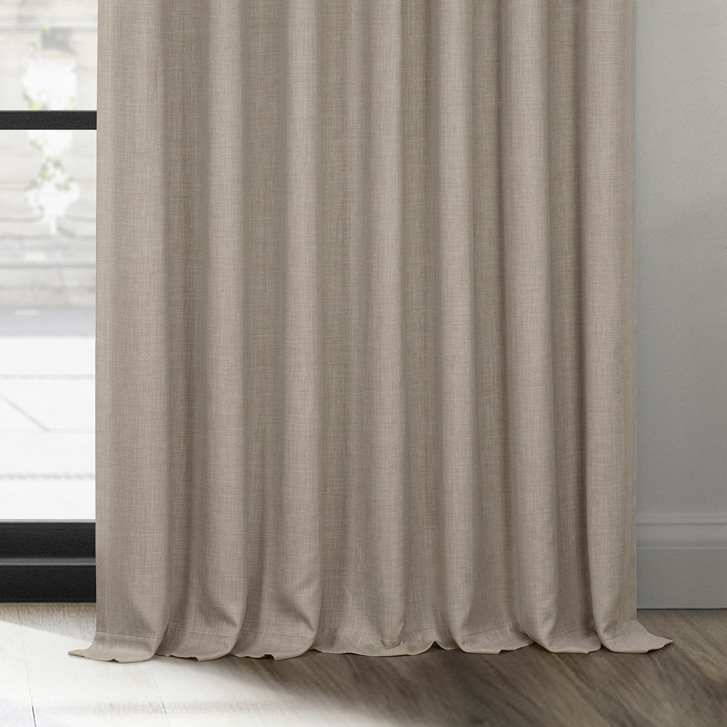 Oatmeal Extra Wide Textured Faux Linen Room Darkening Curtain