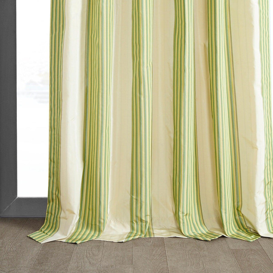 Aamani Green Yellow Striped Silk Room Darkening Curtain