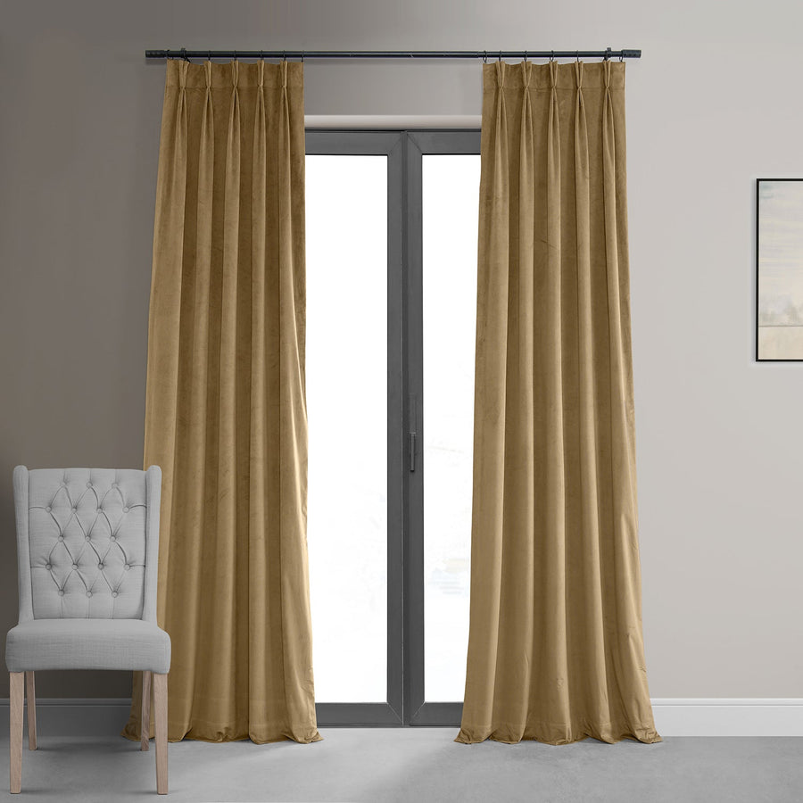 Amber Gold French Pleat Signature Velvet Blackout Curtain