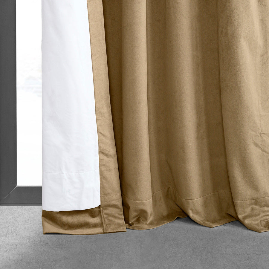 - Amber Gold is soothing warm golden yellow tone. This luxurious velvet curtain is lined with off white thermal fabric.