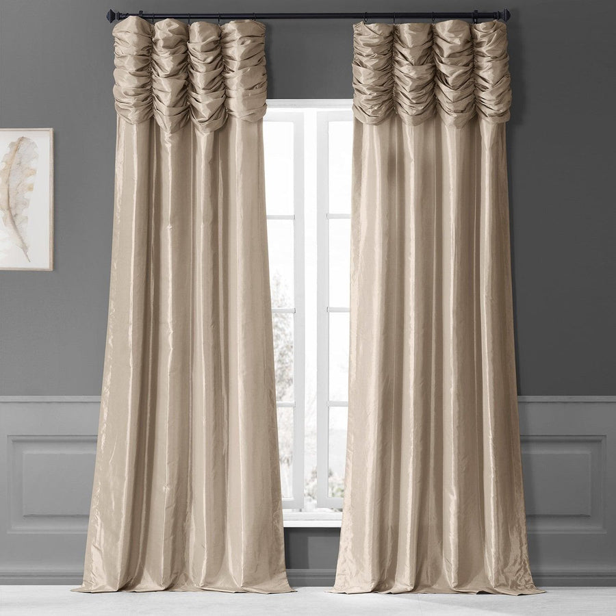 Antique Beige Ruched Solid Faux Silk Taffeta Room Darkening Curtain