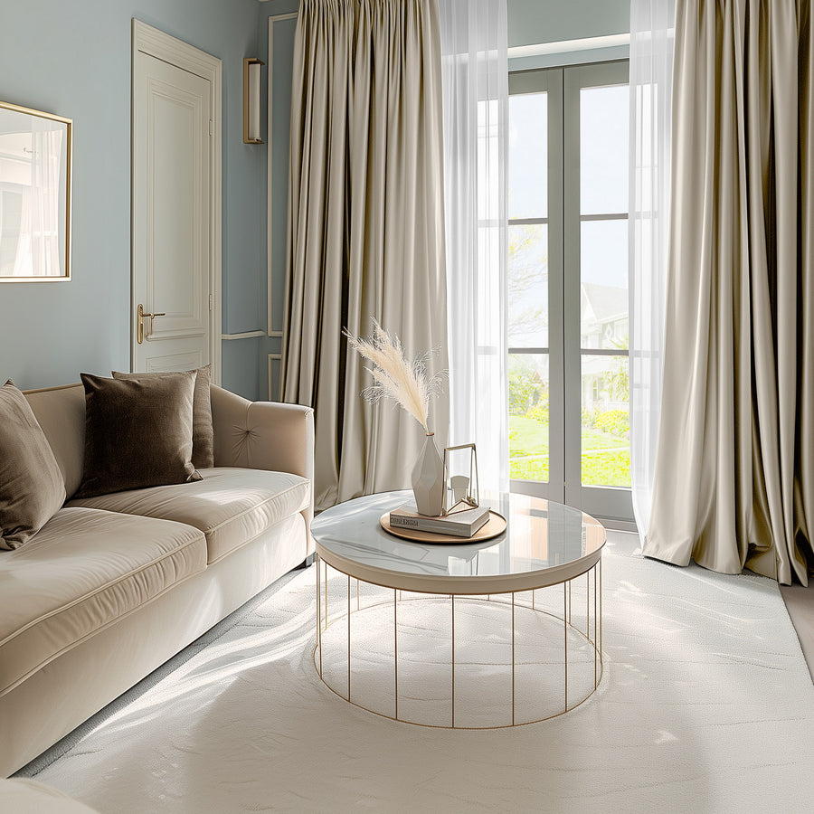 Antique Beige Solid Faux Silk Taffeta Custom Curtain