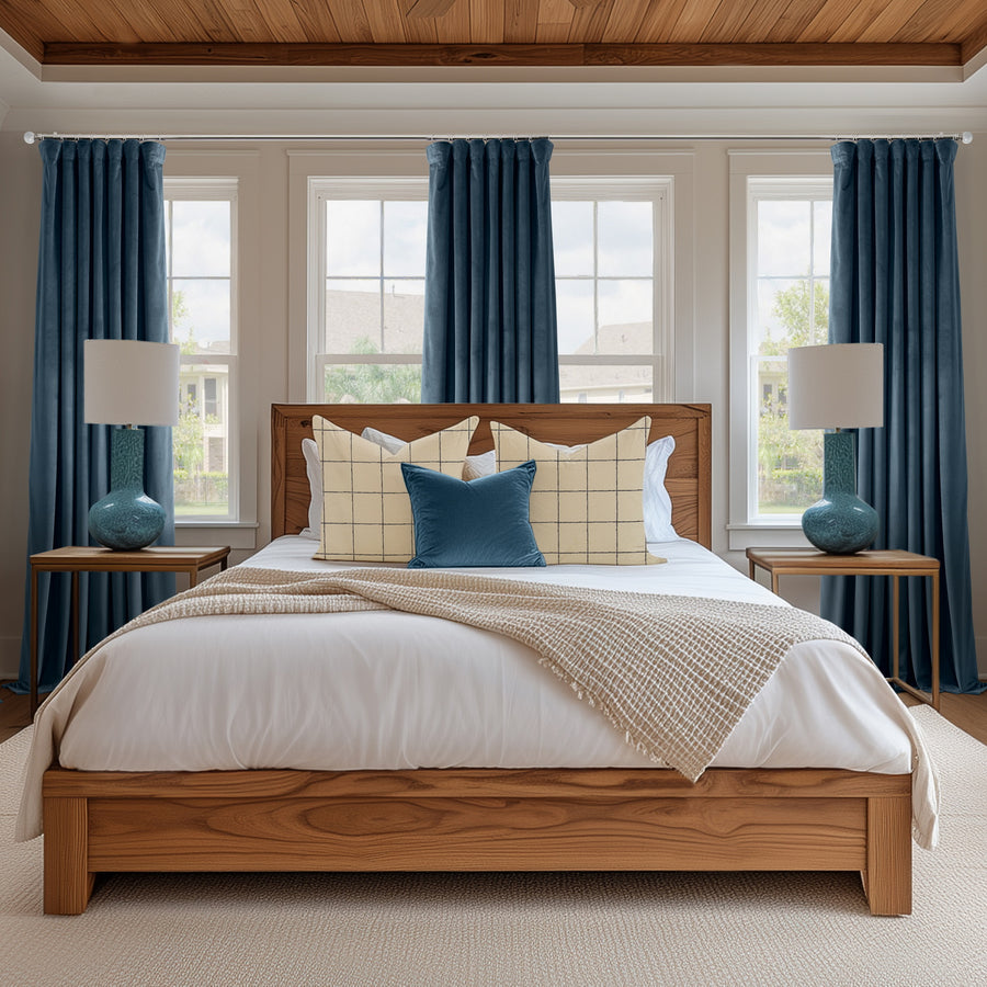 Avalon Blue Heritage Plush Velvet Custom Curtain