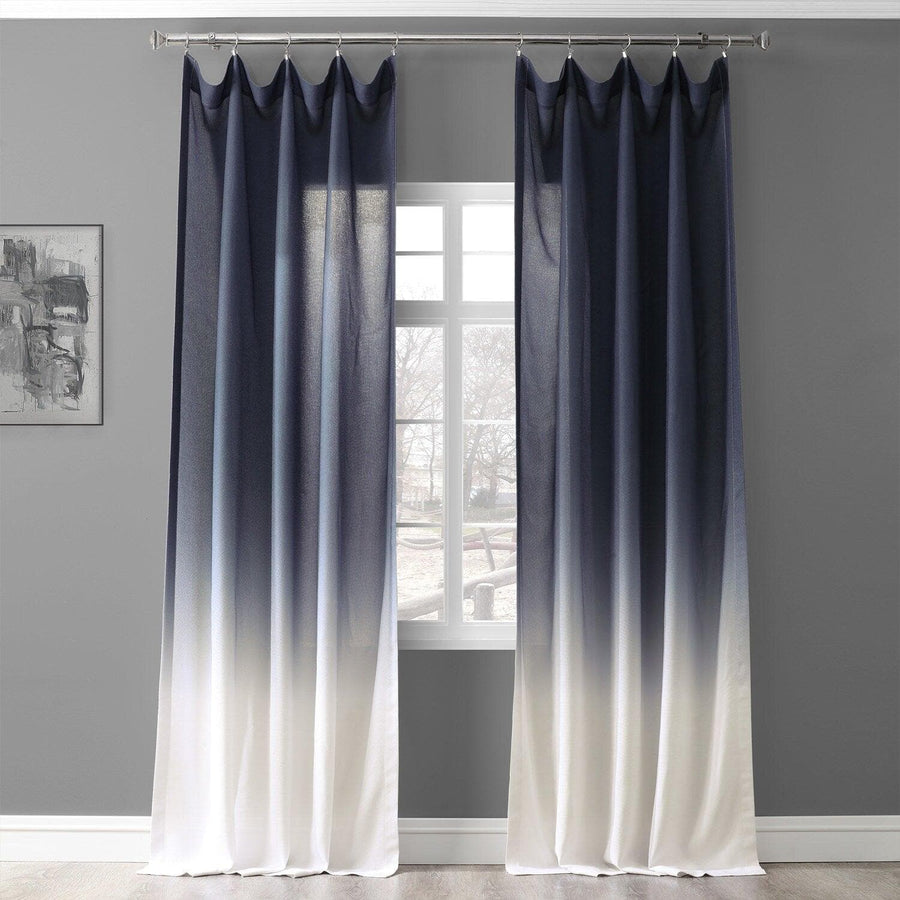 - Ombre Blue is a wide gradient fading from deep blue to white. This linen-look curtain is unlined and has no backing.