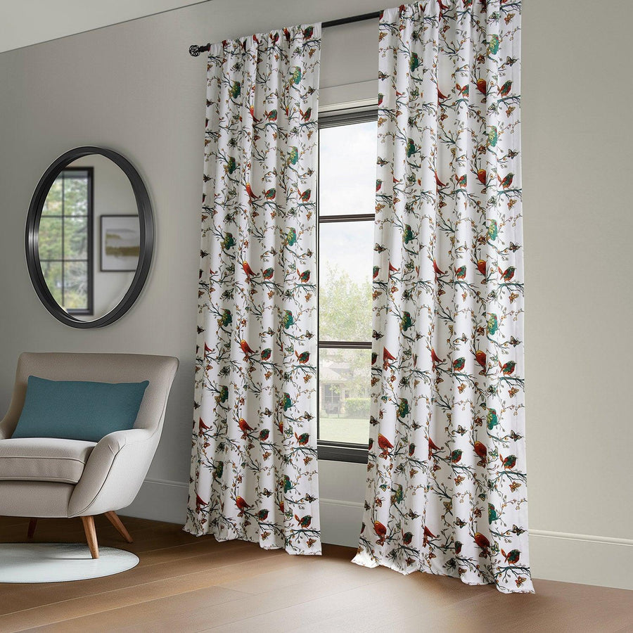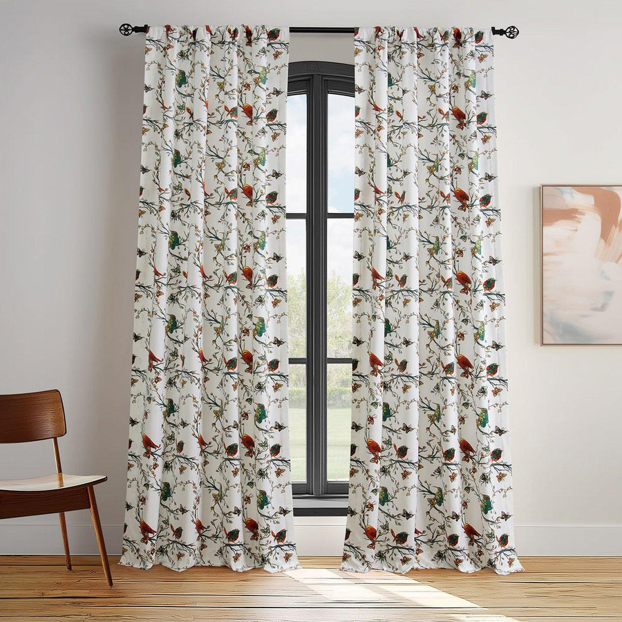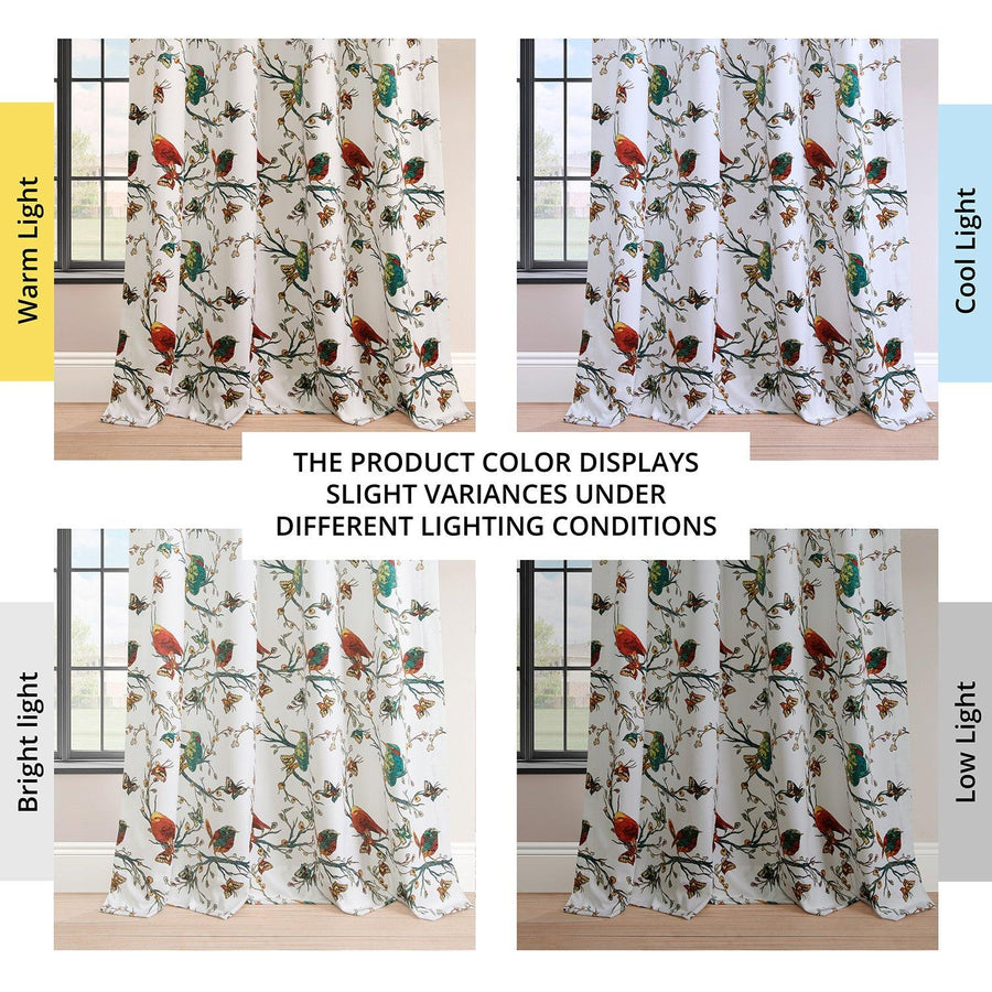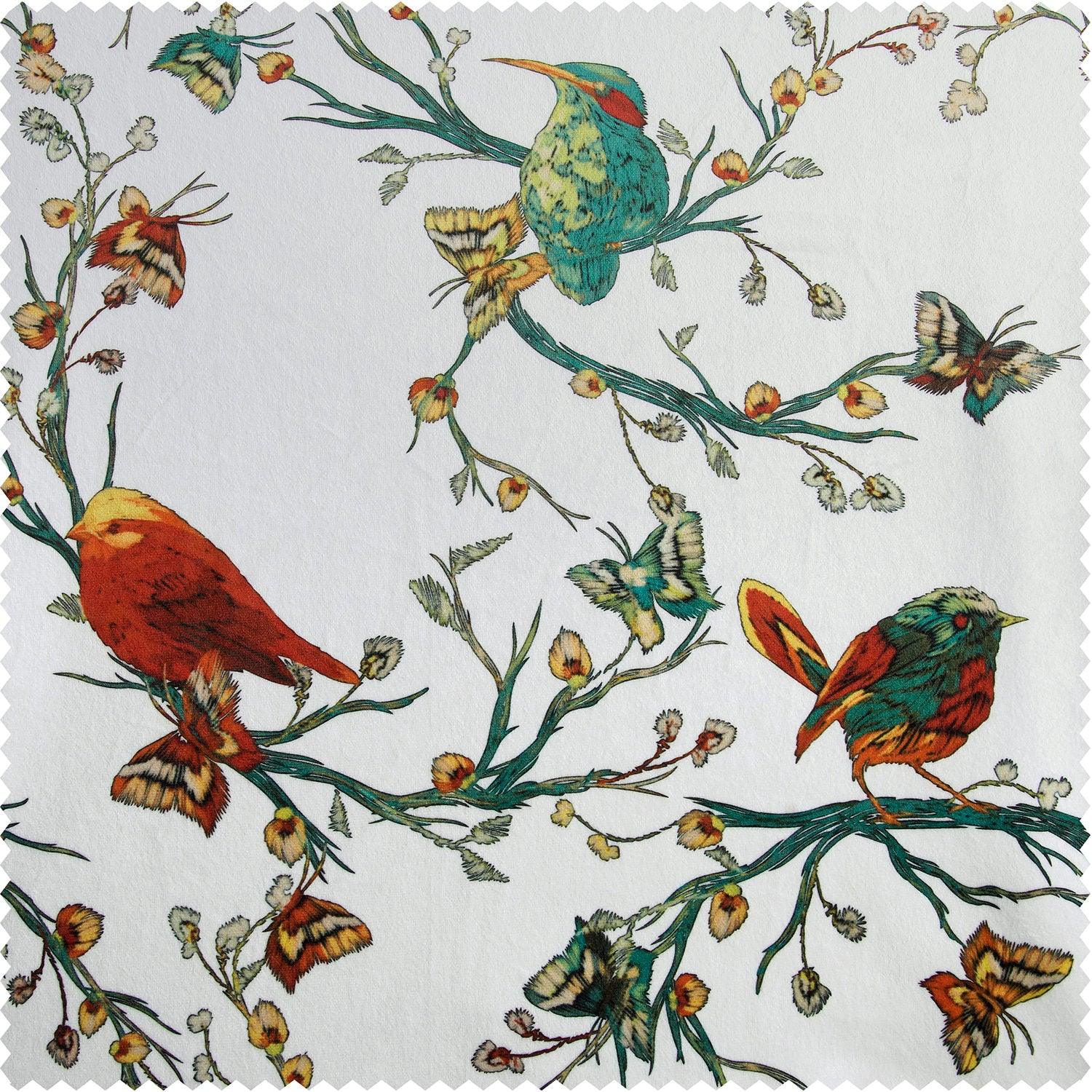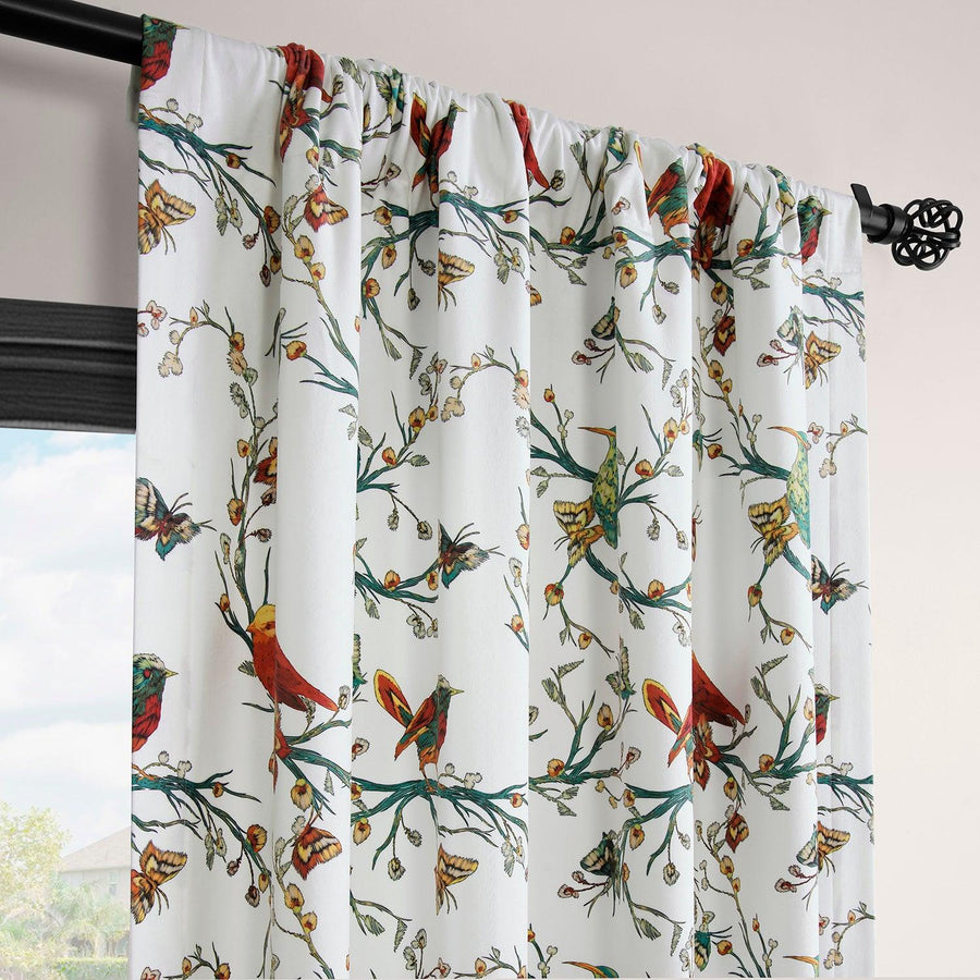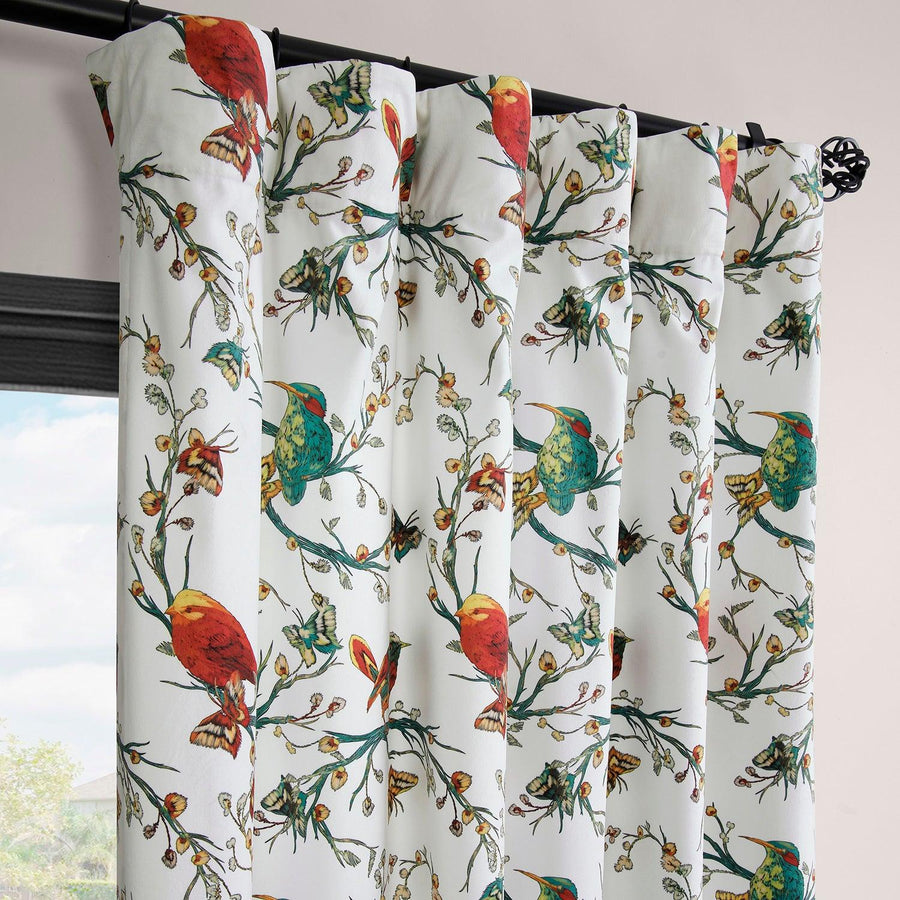 - The Botanic Garden White is a decorative print featuring a vibrant green bird perched on a slender branch, surrounded by flowering plants. The vibrant colors of the bird would stand out beautifully against the rich texture of velvet. The "Botanic Garden White" printed unlined velvet drape can bring a touch of drama and opulence to a room. Despite being unlined, velvet curtains can provide thermal insulation and block sunlight.