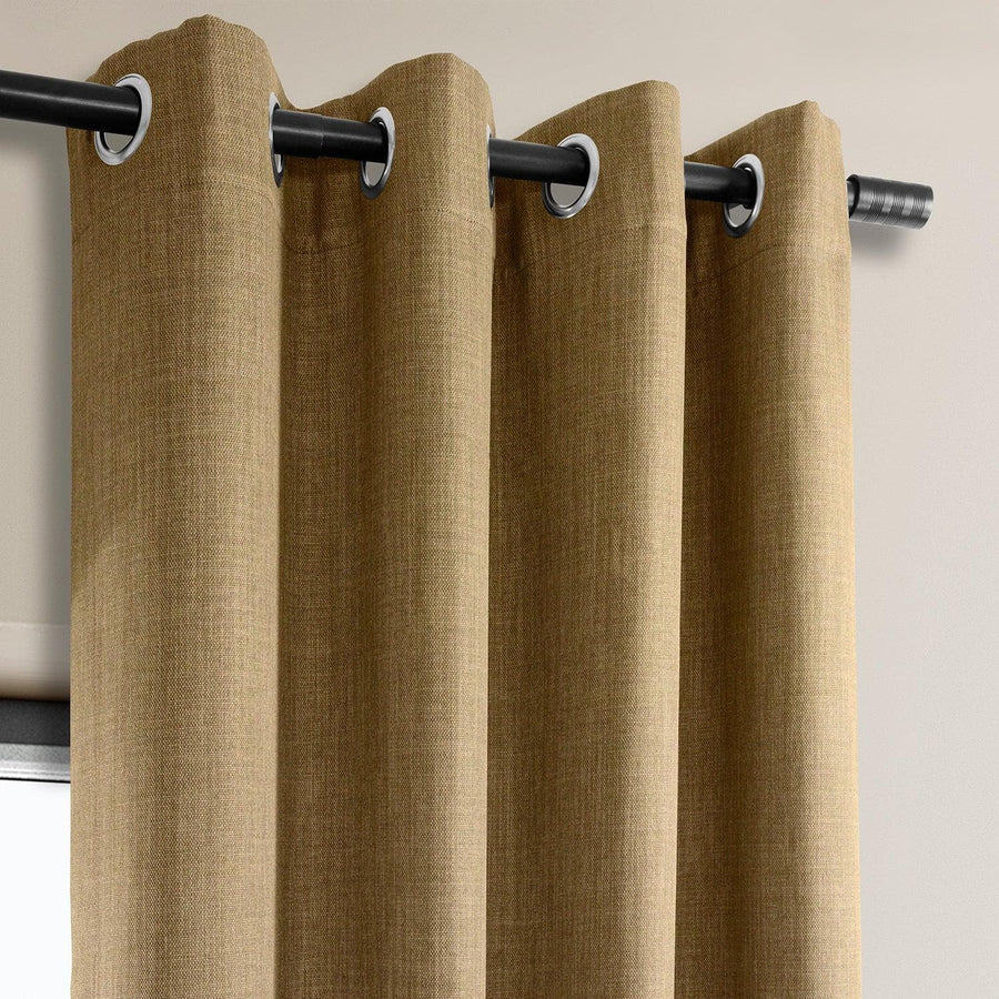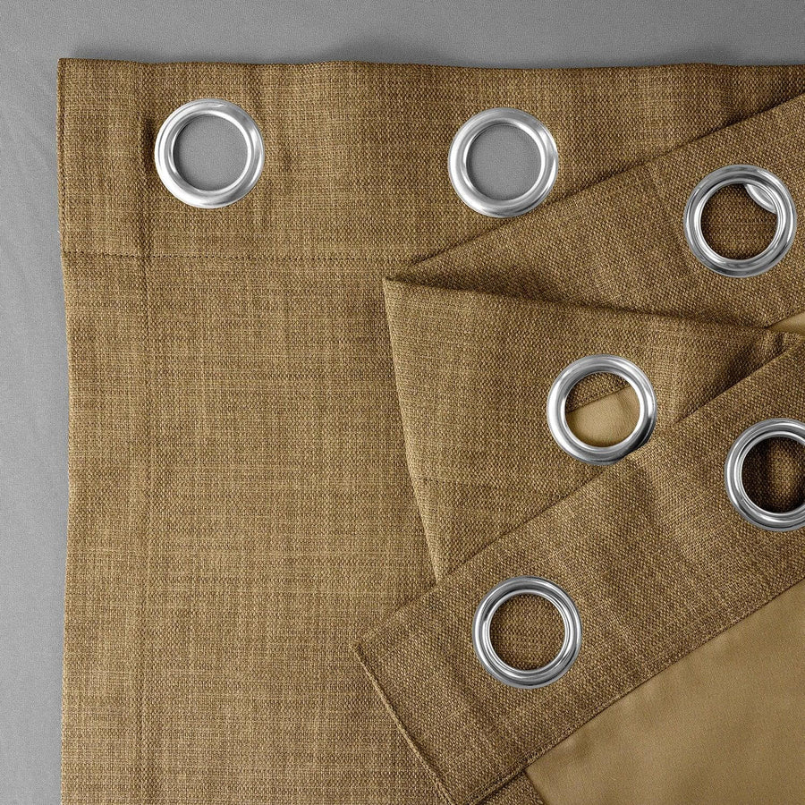 Butterscotch Grommet Textured Faux Linen Room Darkening Curtain