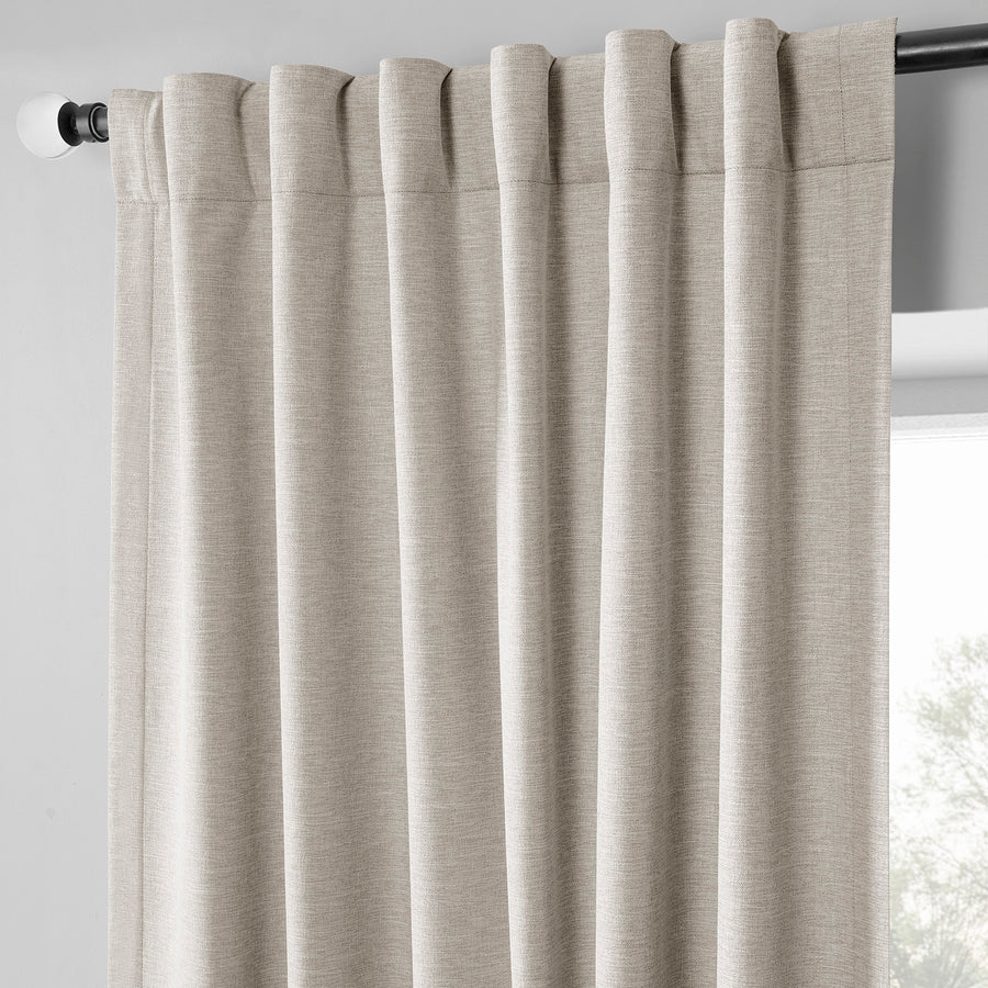 Coastal Beige Boho Chic Faux Linen Blackout Curtain Pair (2 Panels)