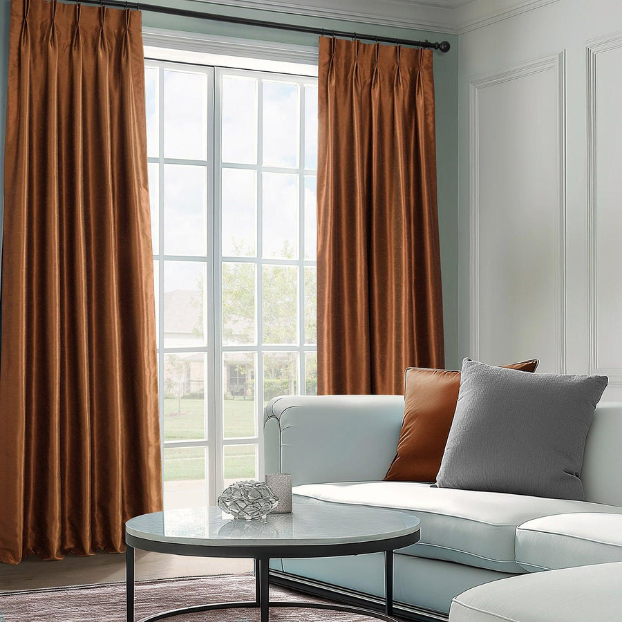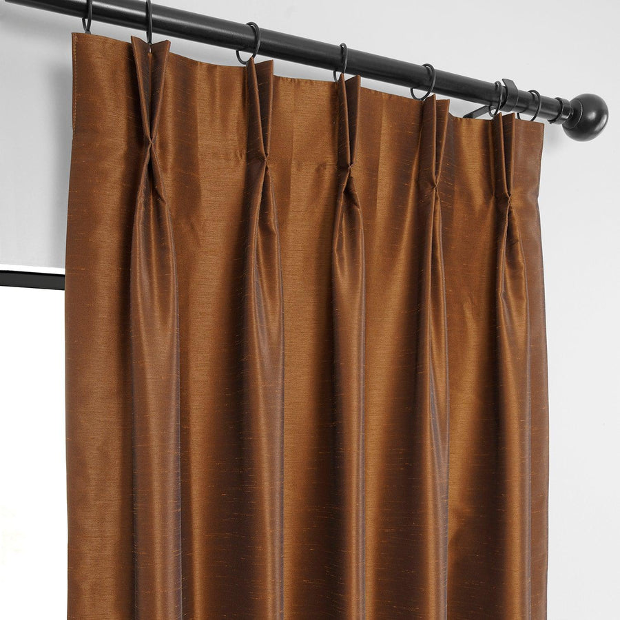 Copper Kettle French Pleat Vintage Textured Faux Dupioni Silk Blackout Curtain