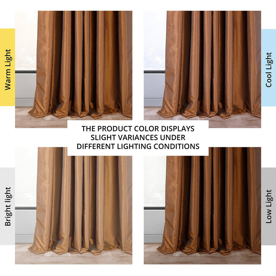 - Vintage Copper Kettle is dark copper brown with slubs scattered throughout. This iridescent silk-look curtain is lined with off white blackout fabric.
