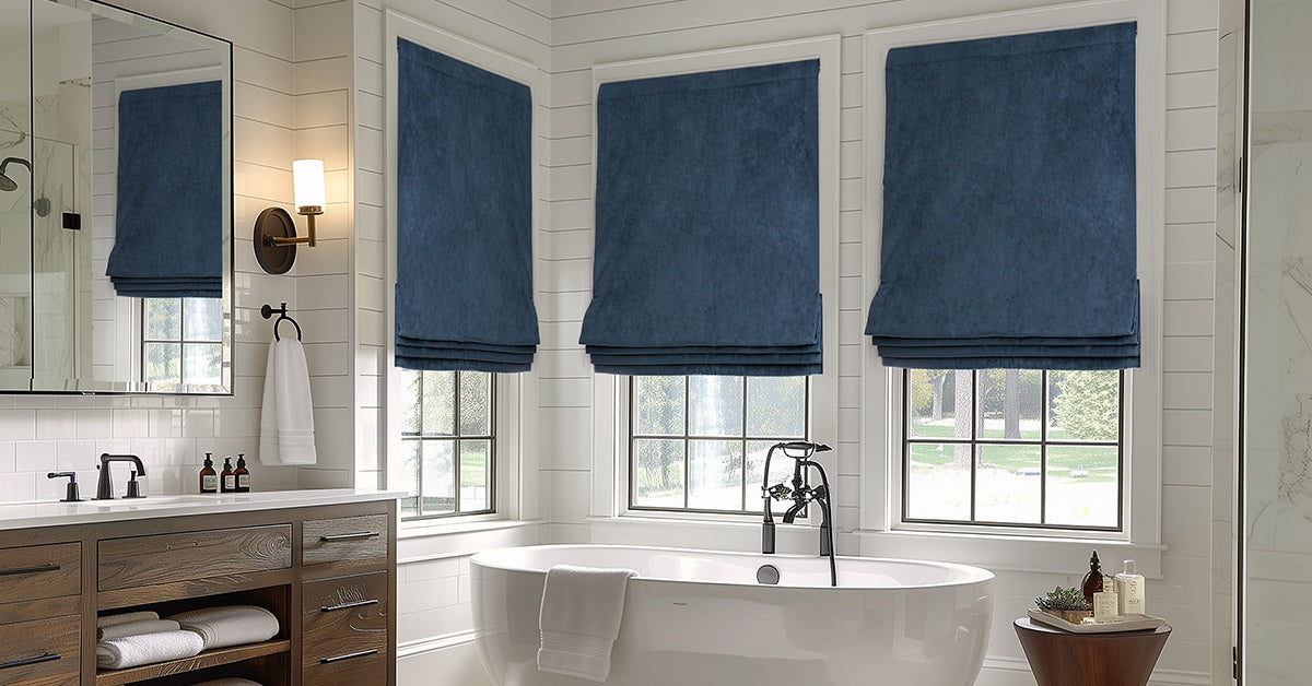 Signature Velvet Roman Shades: Upgrade your windows with our Signature Velvet Roman Shades, available in a range of captivating colors including blue, white, cream, green, and grey. Choose between light filtering properties of room darkening or blackout to suit your specific needs and preferences. With lining choices such as unlined or blackout lined, these shades offer versatility and customization for various rooms in your home. Experience the ultimate luxury and style with our Signature Velvet Roman Shades, perfect for bedrooms, living rooms, dining rooms, and more.