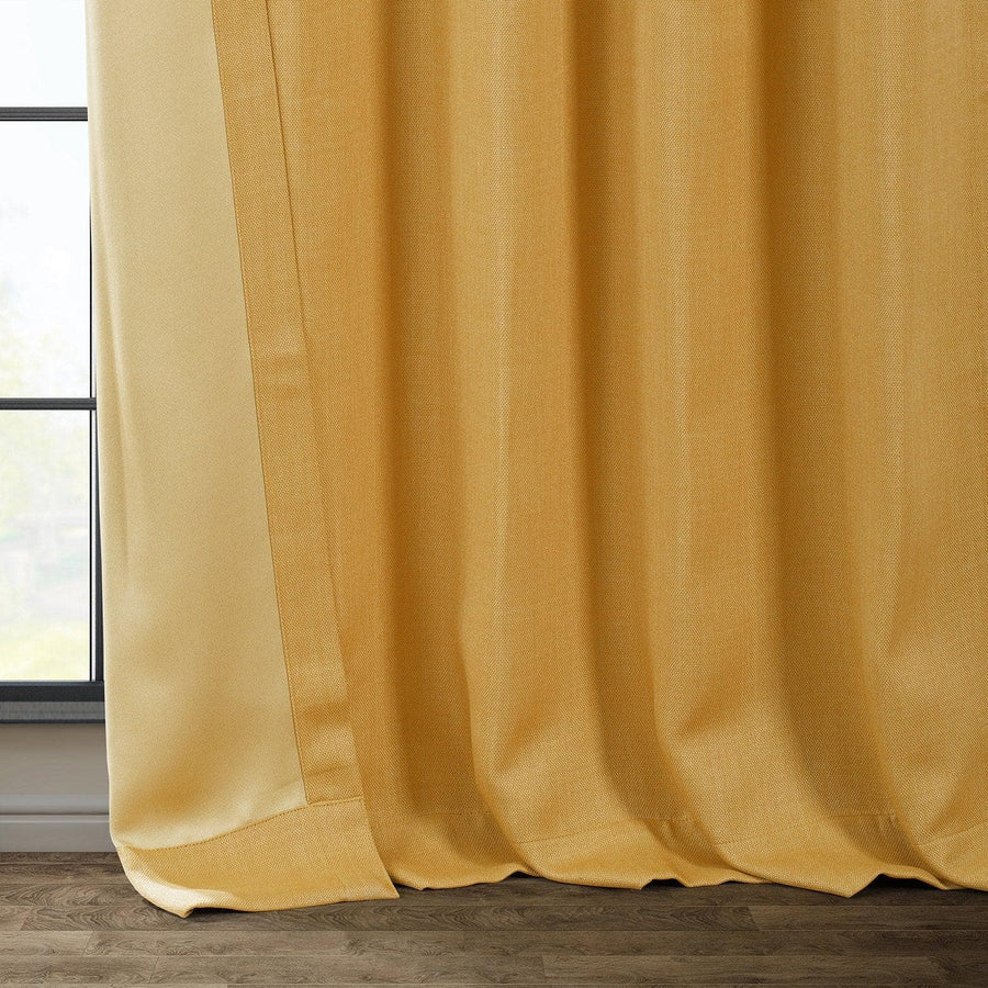 Dandelion Gold Textured Faux Linen Room Darkening Curtain