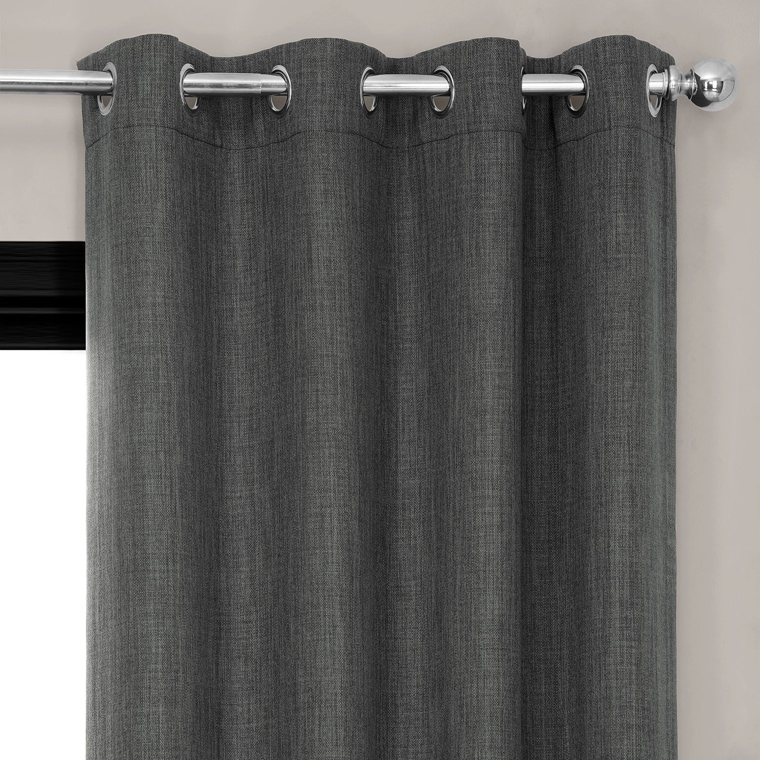 Dark Gravel Grommet Textured Faux Linen Room Darkening Curtain