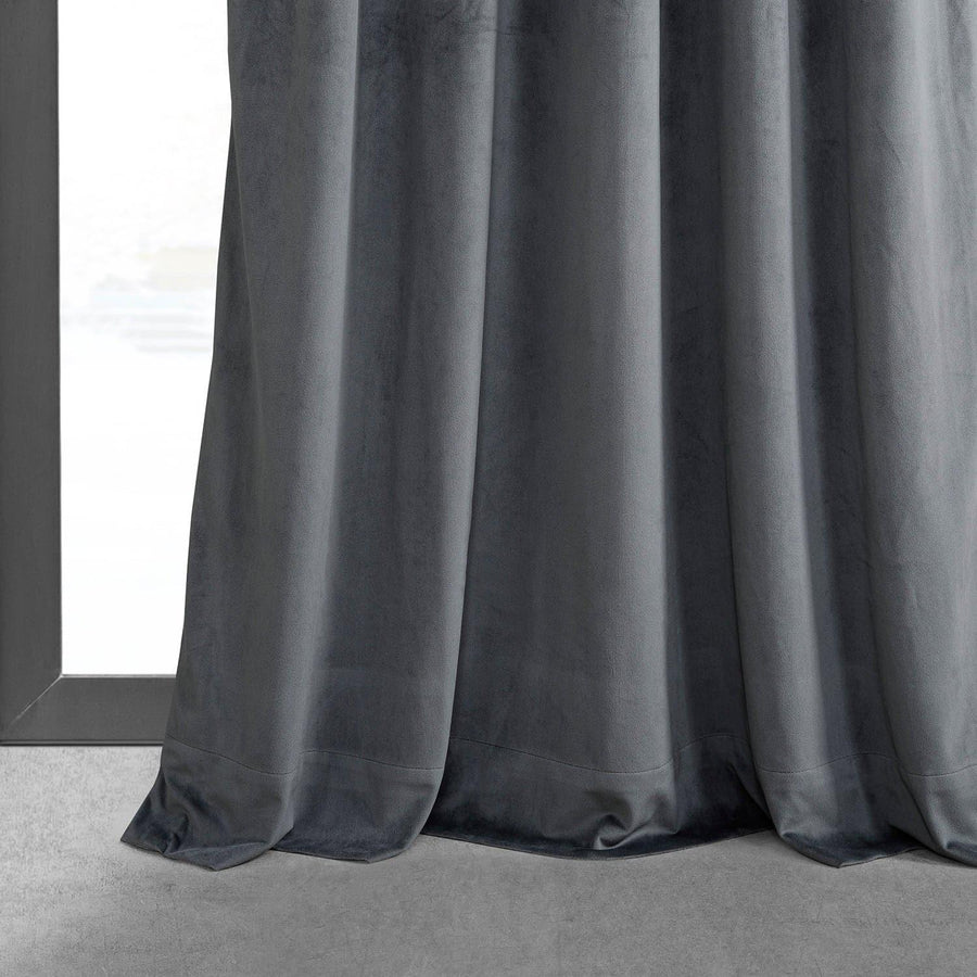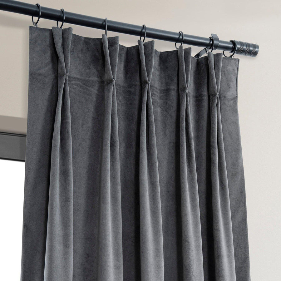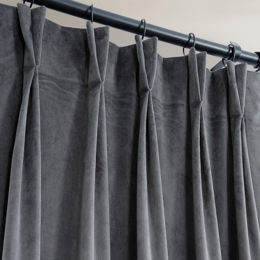 Distance Blue Grey French Pleat Signature Velvet Blackout Curtain