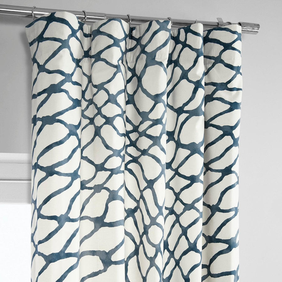 Ellis Blue Abstract Printed Cotton Room Darkening Curtain