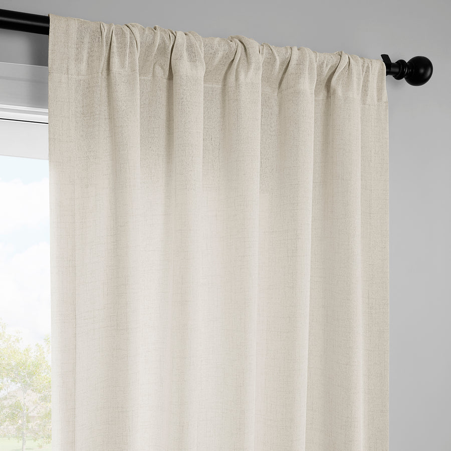 French Country Cream FarmTown Faux Linen Sheer Curtain Pair (2 Panels)