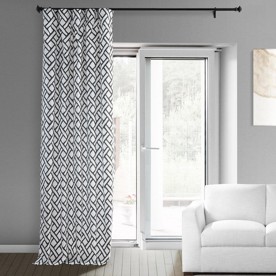 Garden Path Black Geometric Printed Cotton Custom Curtain