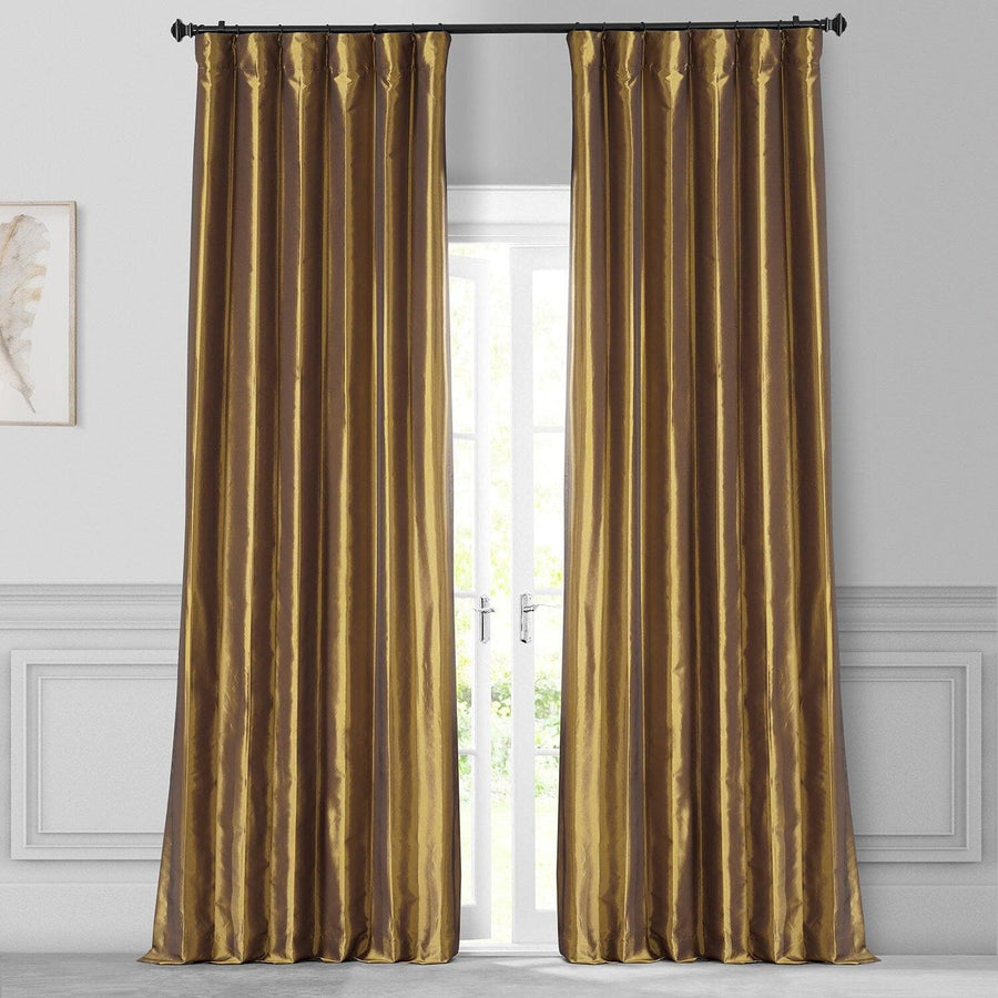 Golden Spice Solid Faux Silk Taffeta Room Darkening Curtain