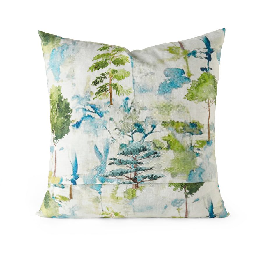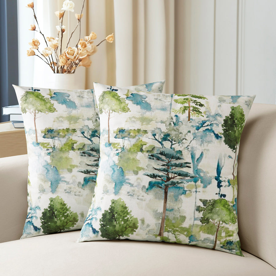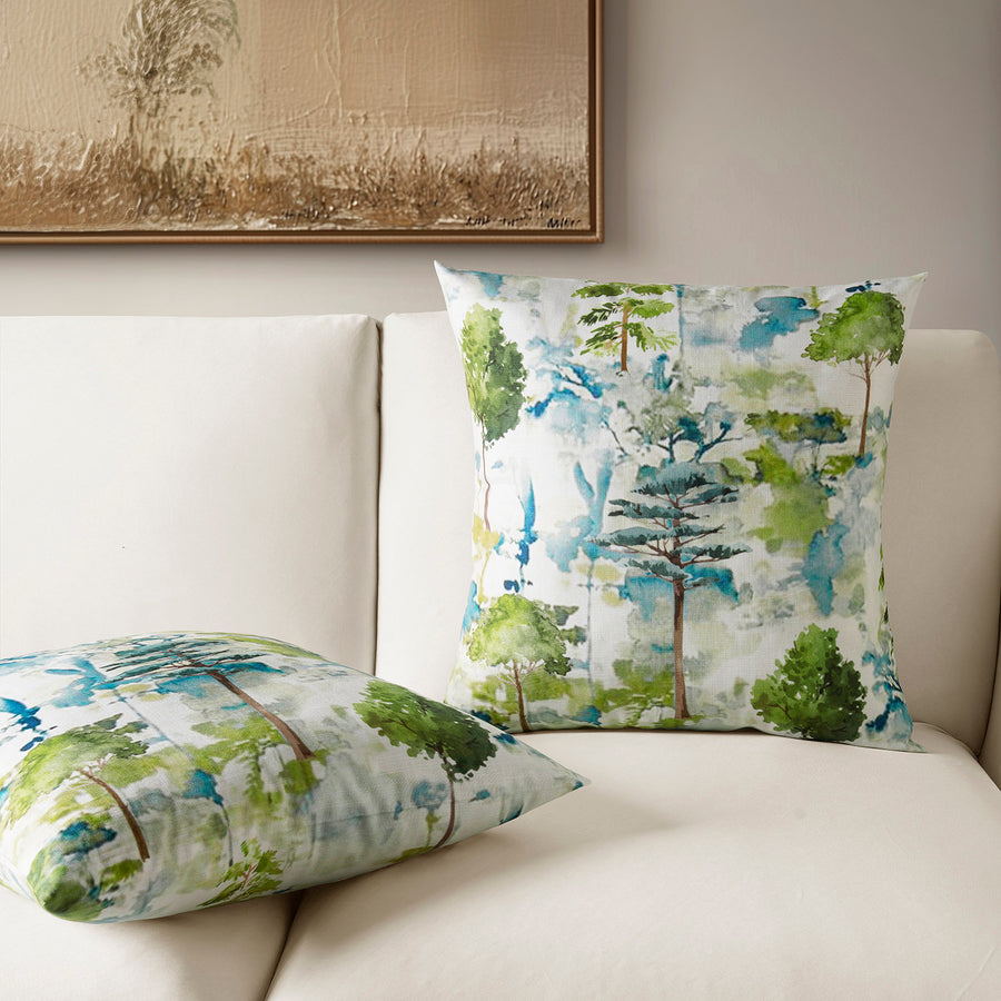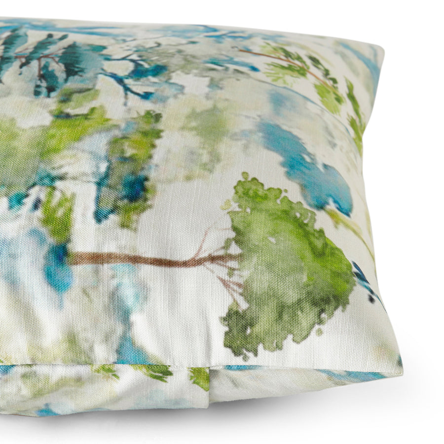 - Woodland Teal Blue is a springtime young forest in leafy green and cool teal blue hues and watery tints on a neutral tone. This 100% Textured Cotton Cushion Cover pair comes as two cushion covers and fits a standard 18" x 18".