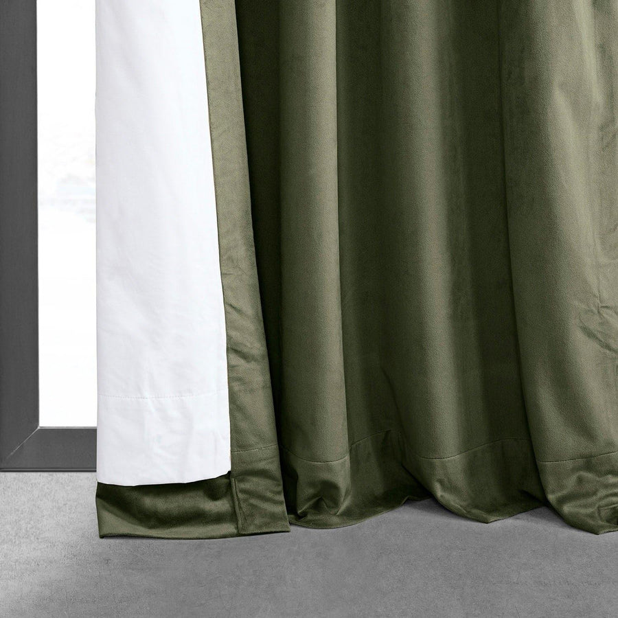 - Hunter Green is earthy green. This luxurious velvet curtain is lined with off white thermal fabric.
