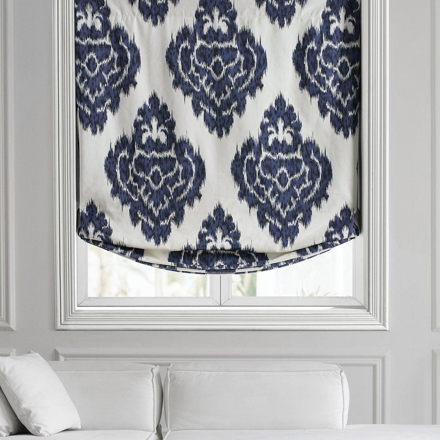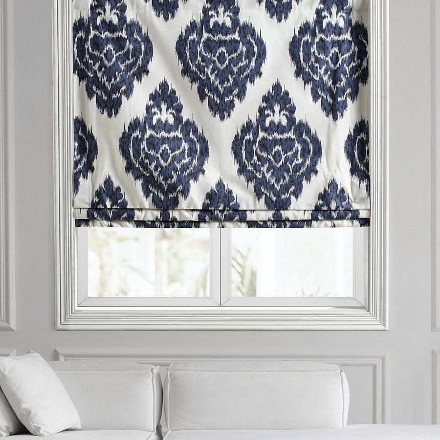 Product Name: Ikat Blue Damask Printed Cotton Roman Shade