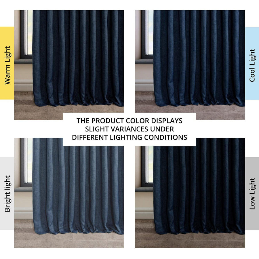 Indigo Extra Wide Textured Faux Linen Room Darkening Curtain