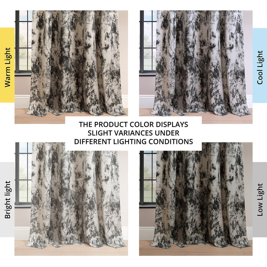 - The Inkblot Black velvet drape is an abstract design with a mix of dark and light areas, giving it a marbled or mottled effect. The irregular and organic pattern creates a natural and fluid abstract appearance, perfect for adding a touch of luxury and dynamism to any interior space. The unlined velvet drape with inkblot patterns can add a dramatic and opulent touch to a room. Despite being unlined, velvet curtains can provide thermal insulation and block sunlight.