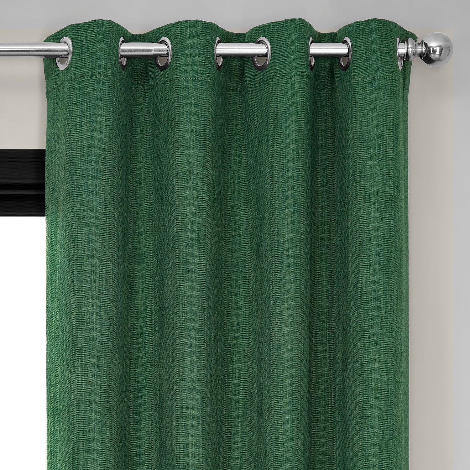 Key Green Grommet Textured Faux Linen Room Darkening Curtain