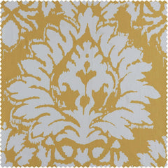 - Lacuna Sun is a batik style ornamental print in off-white on a light gold background.