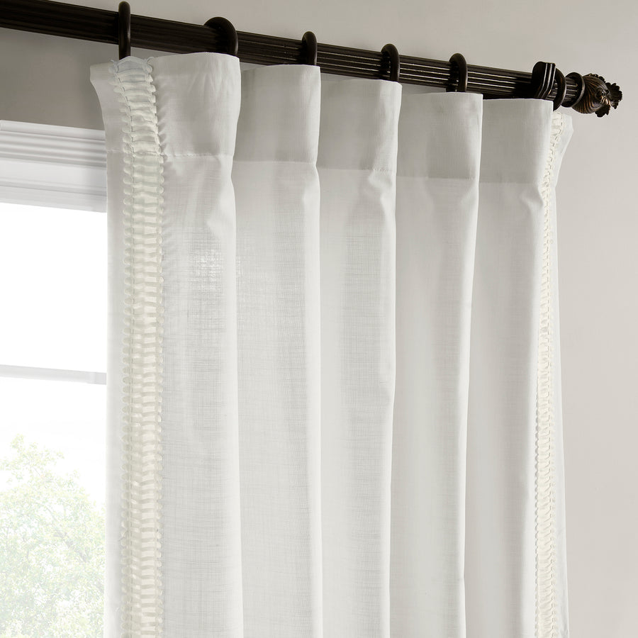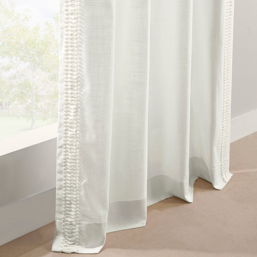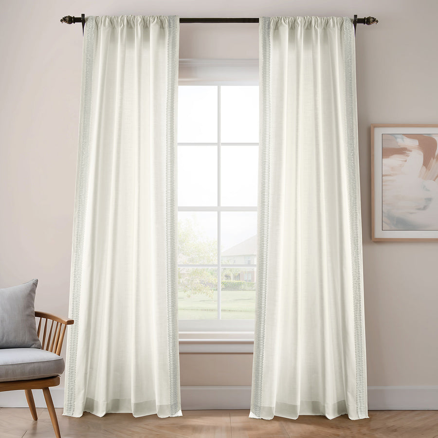 Maidstone White Bordered Modern Hampton Textured Cotton Light Filtering Curtain